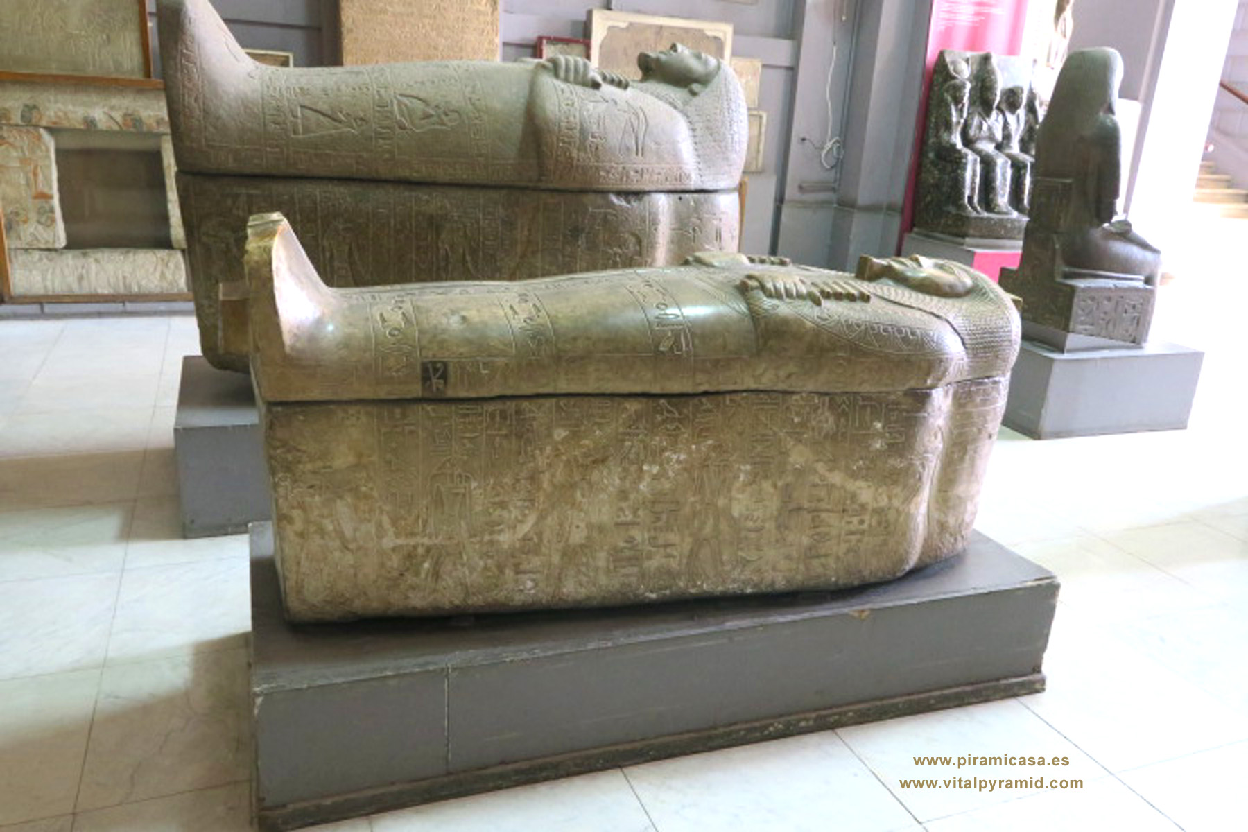 Seguimos subiendo fotos del Museo de El Cairo, en la mayor colección de imágenes de la web sobre todo Egipto. Las pirámides, museos, templos, lugares misteriosos, enorme cantidad de fotos con grabados y jeroglíficos con la mayor definición posible. Recomendamos ver esta web desde el ordenador o tablet grande, porque en la computadora se verá mejor que en cualquier teléfono. El Museo de El Cairo contiene en sus depósitos más objetos que los expuestos. El nuevo museo en construcción actualmente, es una gran obra del gobierno de Al-Sisi, que ha mejorado todo en Egipto, incluyendo la posibilidad de fotografiar en el Valle de los Reyes y los museos, donde antes estaba totalmente prohibido. Un ticket por un valor que oscila entre 10 y 20 euros y puedes fotografiar todo, lo que nos permite investigar mucho más y trabajar sobre los jeroglíficos y objetos extraños que antes sólo podíamos verlos un momento en los museos.