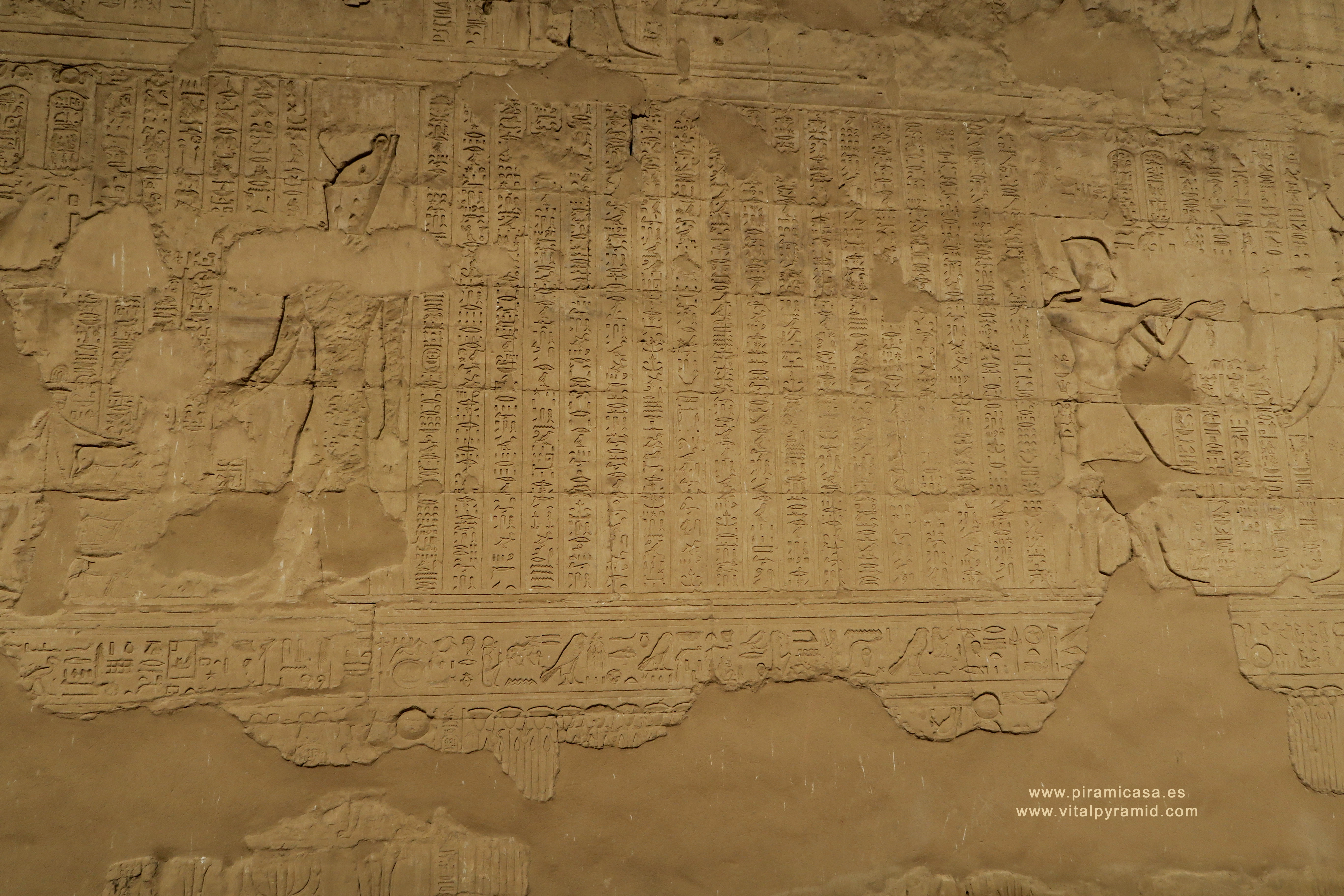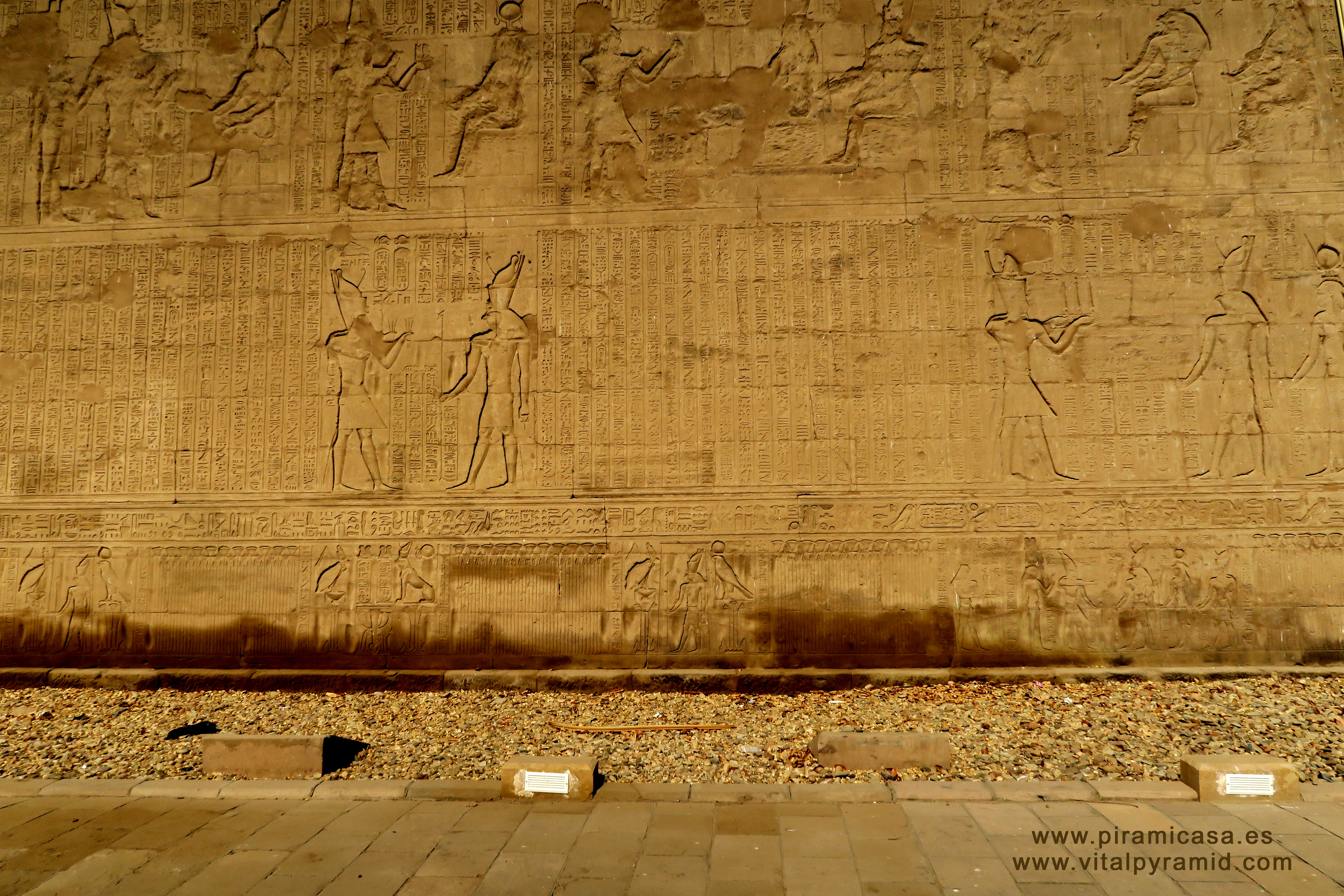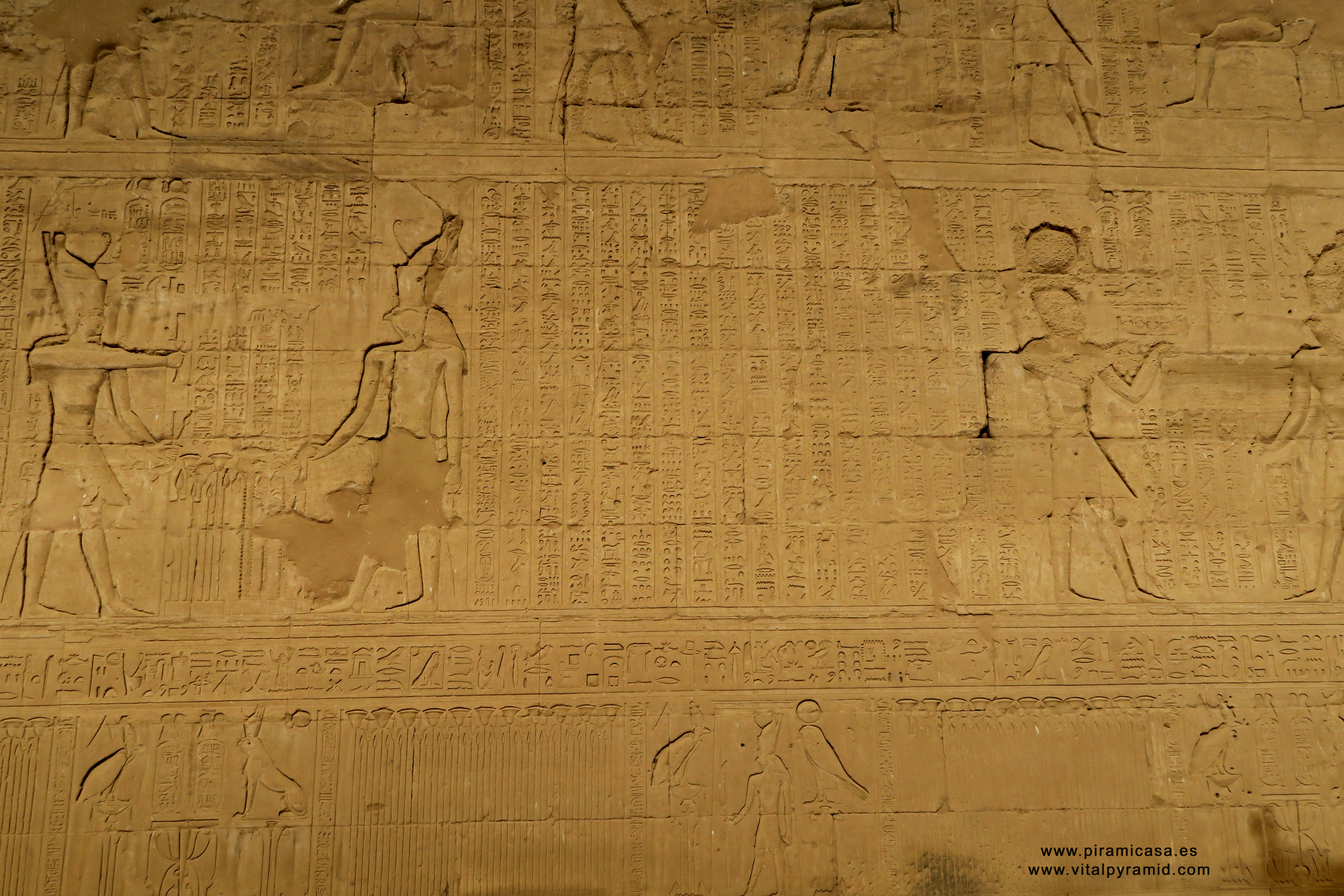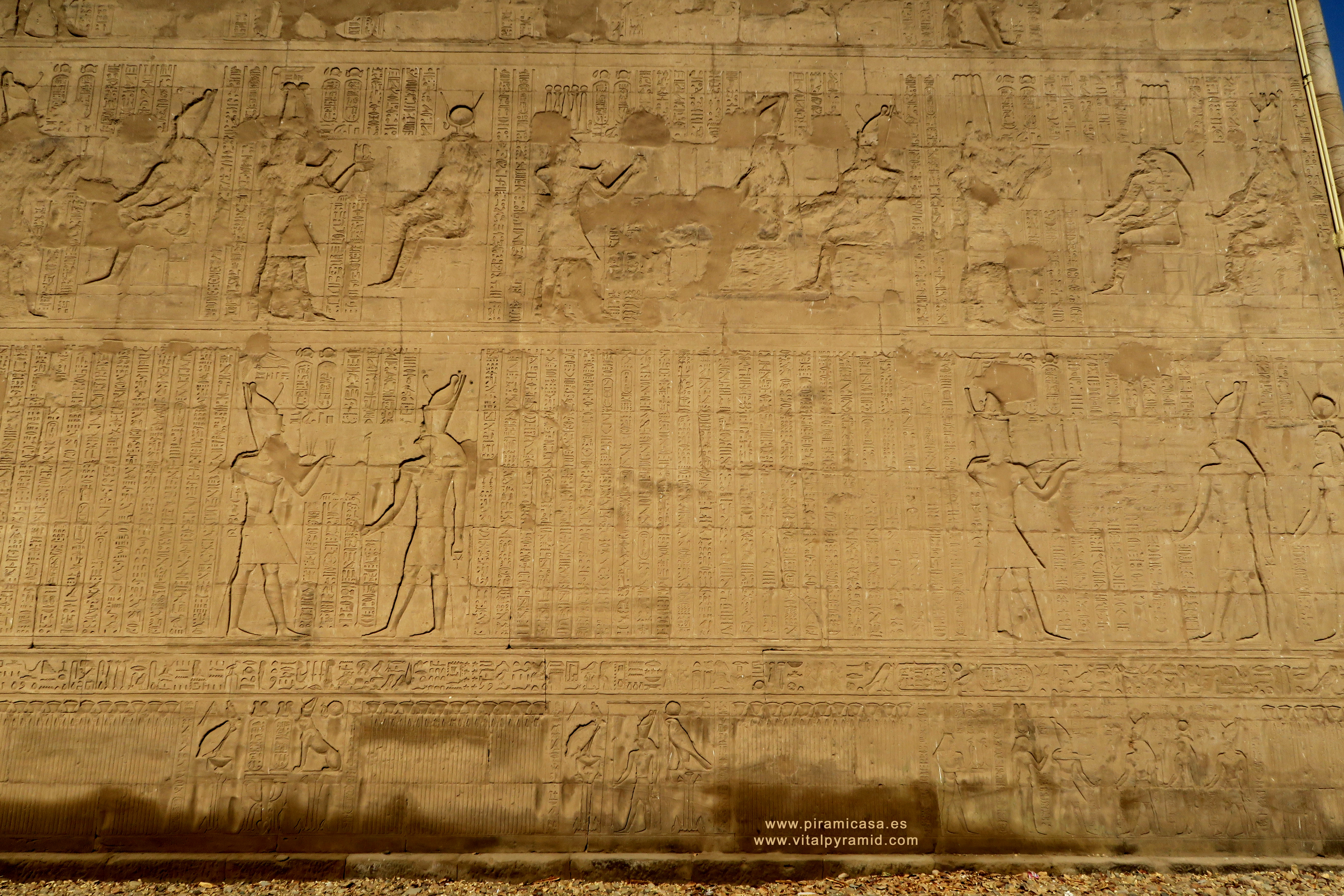 Como decía en el anterior documento, necesitaríamos más de cinco mil fotos muy grandes y con gran definición, sólo para cubrir el Templo de Horus, en Edfu, Egipto. En cada viaje iremos tomando secuncias más ordenadas, aunque el desorden que impera en estas imágenes de este Templo, no será obstáculo para hacer algunas investigaciones interdisciplinarias básicas. Al menos para despertar la curiosidad de los que no se quieran conformar con seguir repitiendo las tonterías que se dicen actualmente a los millones de turistas que visitan Egipto cada año.