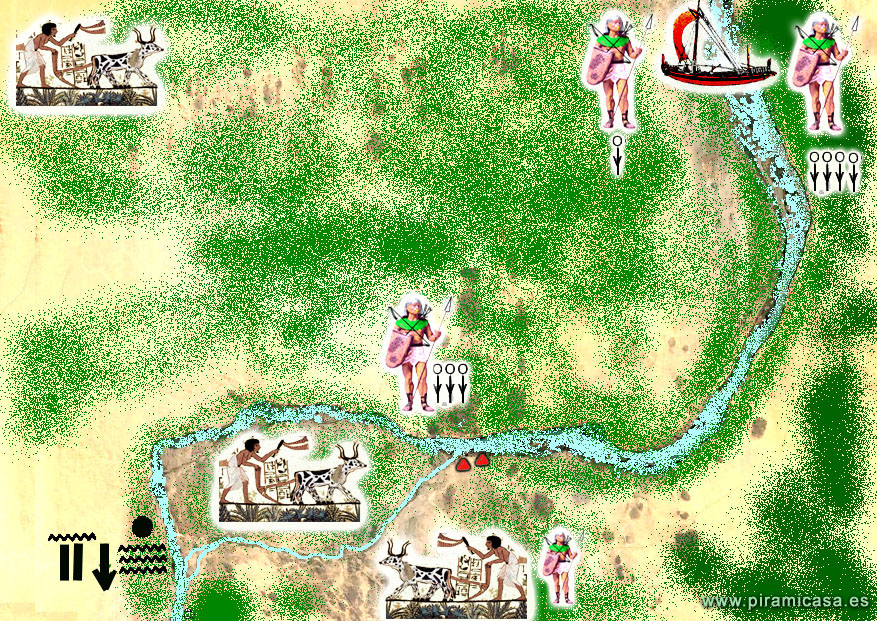 NOTA: Las tácticas de guerra de los egipcios, a lo largo de los 12.500 (doce mil quinientos años) que gobernaron Ankh em-Ptah, fueron tan variadas y terminantes en algunos casos, que muchos imperios esclavistas se cuidaron muy bien de atacarles. Su experiencia en la guerra, unida a las capacidades desarrolladas mediante el Conocimiento Sagrado, su elevado nivel de consciencia y versatilidad de recursos técnicos sencillos pero de extrema eficiencia, convirtieron a los egipcios en guerreros tan efectivos como pudieron serlo los chinos, con una continuidad histórica más o menos similar. La forma de hacer los campamentos les hacía prácticamente inespugnables a fuerzas iguales, pero la estrategia de vigilancia, mensajería y control del escenario bélico les permitió destruir con escasas bajas propias a los ejércitos que les hostigaron durante milenios intentando someterles. Continuamos con algunos párrafos e imágenes del Libro "Faraón".