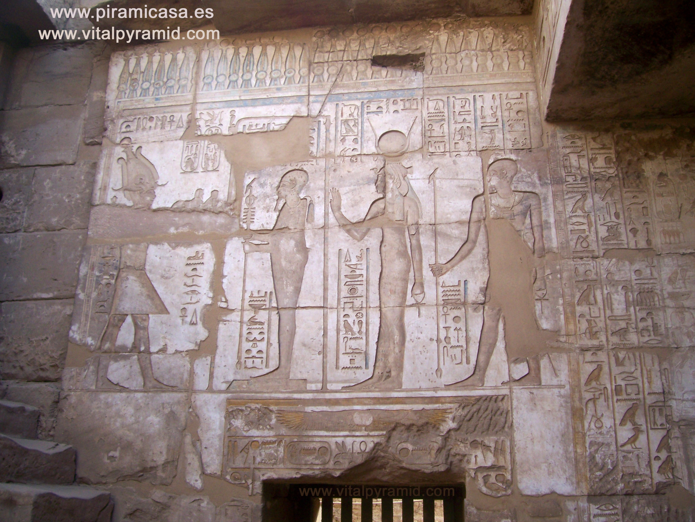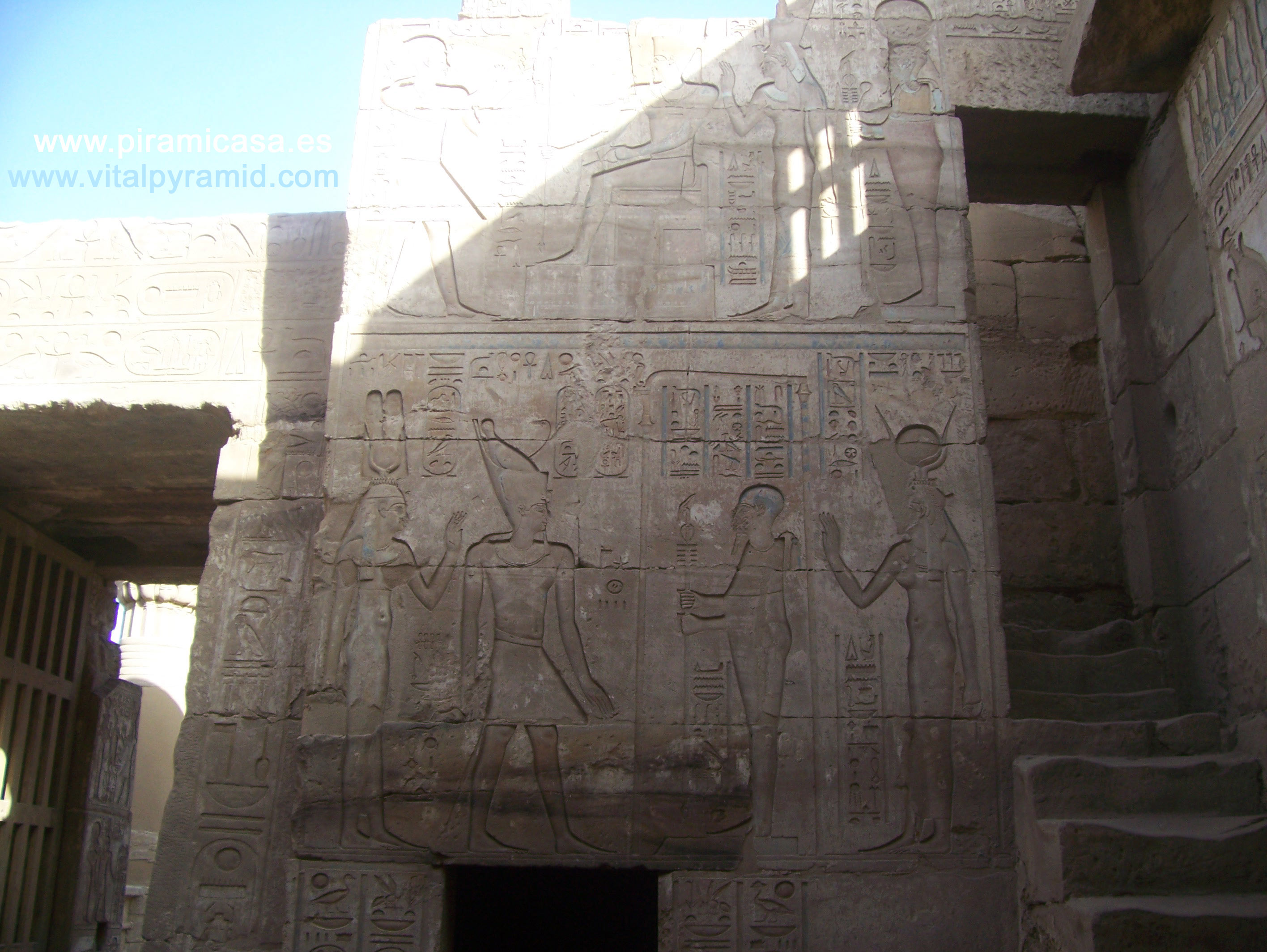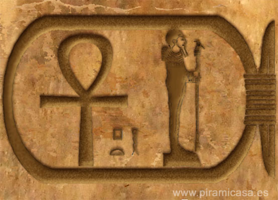 ...aunque el más recurrente y visible en todo los Templos de Egipto es Ankh em-Pi-ra-um. (La Llave de la Vida en la Pirámide). El Término "pirámide" se compone del número PI (el númerito famoso), RA (el sol o el rayo solar) y UM que tiene una connotación esotérica que no discutiremos con los académicos que nada saben de hermetismo.
