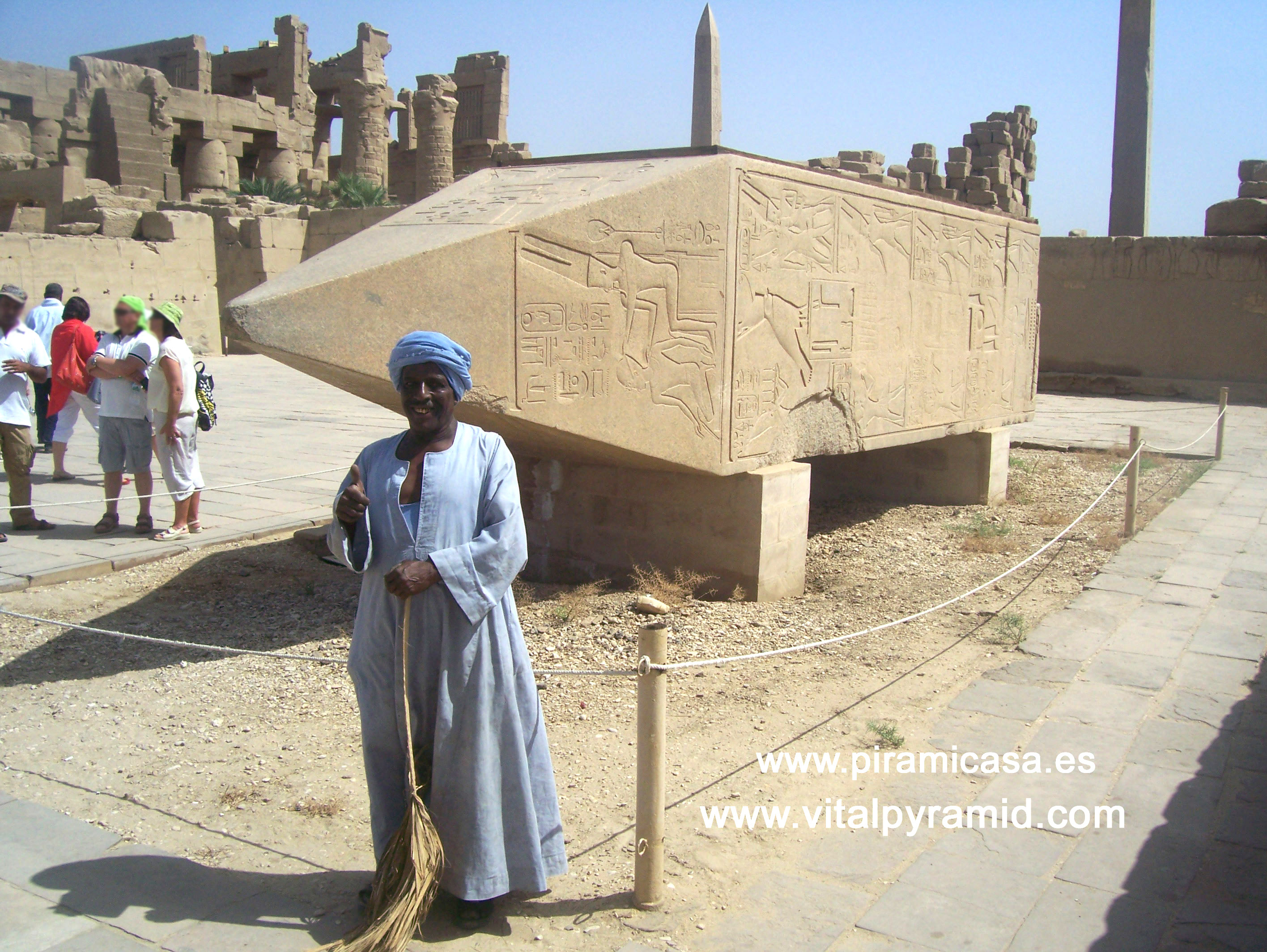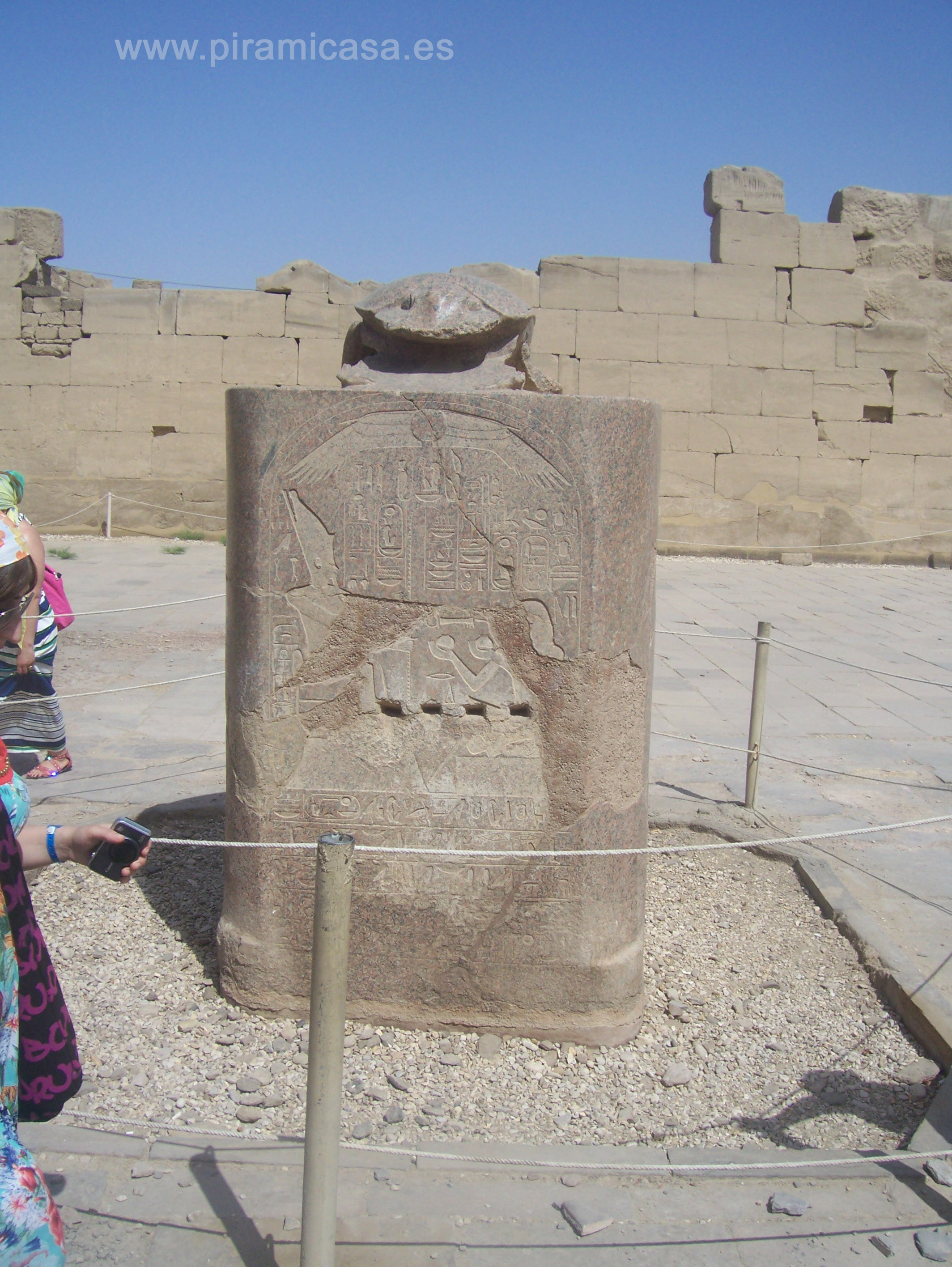 sentido anti-horario a este monolito de granito con el escarabajo en