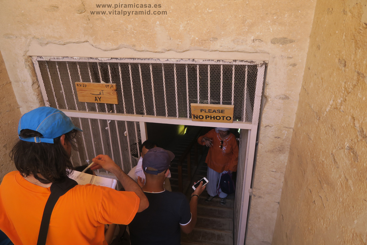 Estas son las imágenes del Valle de los Monos. Como hasta el momento no hay traducción de los jeroglíficos sino teorías absolteas que se enseñen como dogma, Aquí entramos a otra cripta, la supuesta de Ay, KV23. Que las llamemos por su nomenclatura está mejor que llamarla por el nombre del supuesto faraón okupa, ya que ni siquiera fueron así las cosas. Jamás se encontró aquí momia alguna, ni en ninguna parte la del supuesto Rey o Faraón Ay. Como he explicado en otros documentos, las momias se encontraron en Karnak, no en el Valle de los Reyes, salvo la del famoso Tuthankamón.