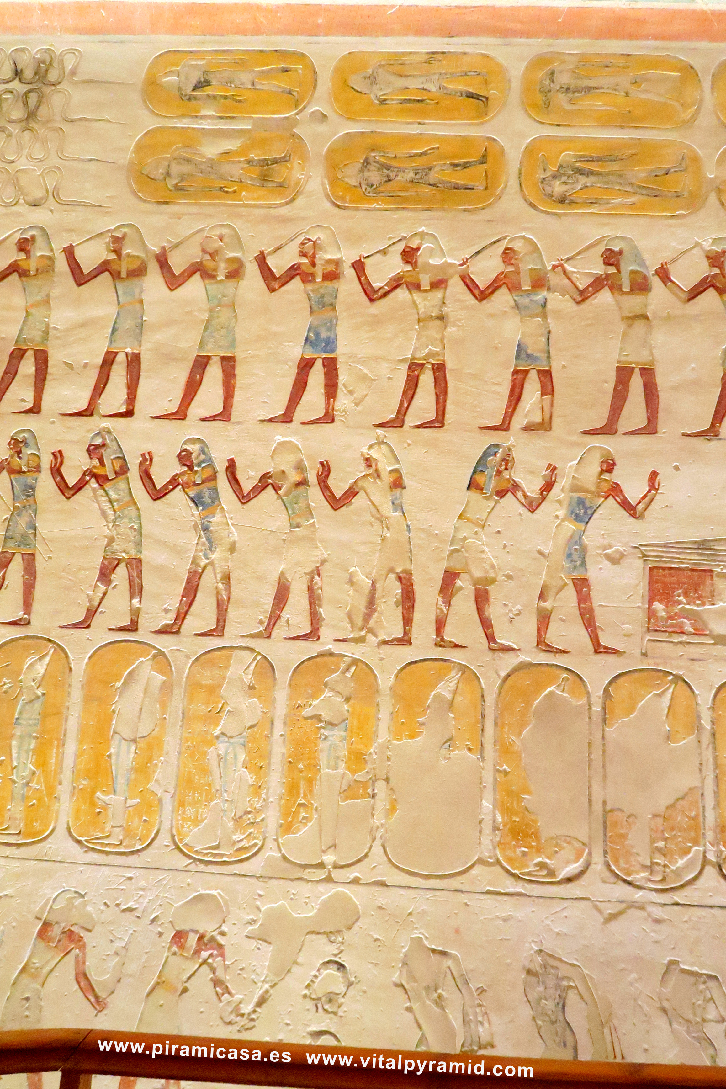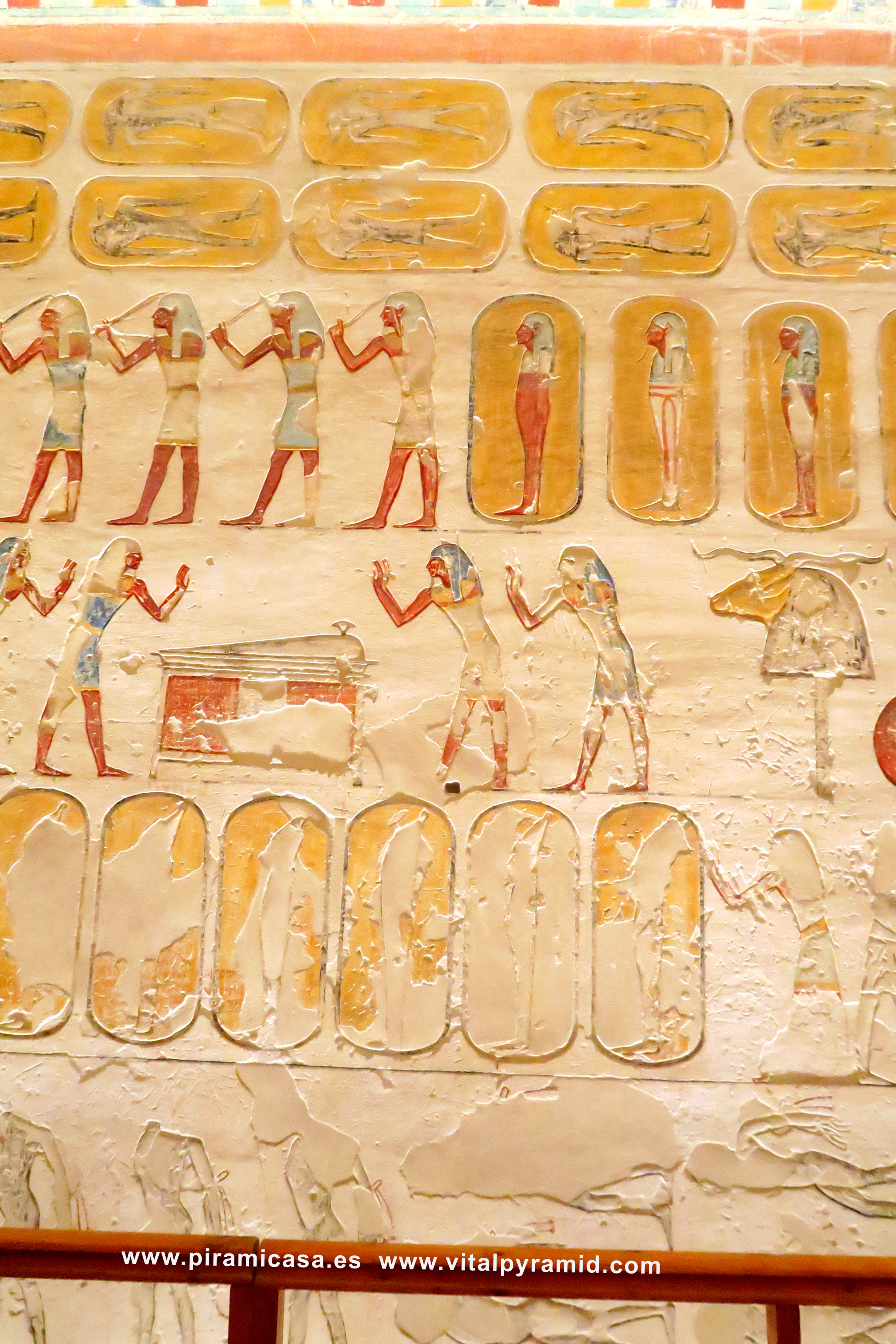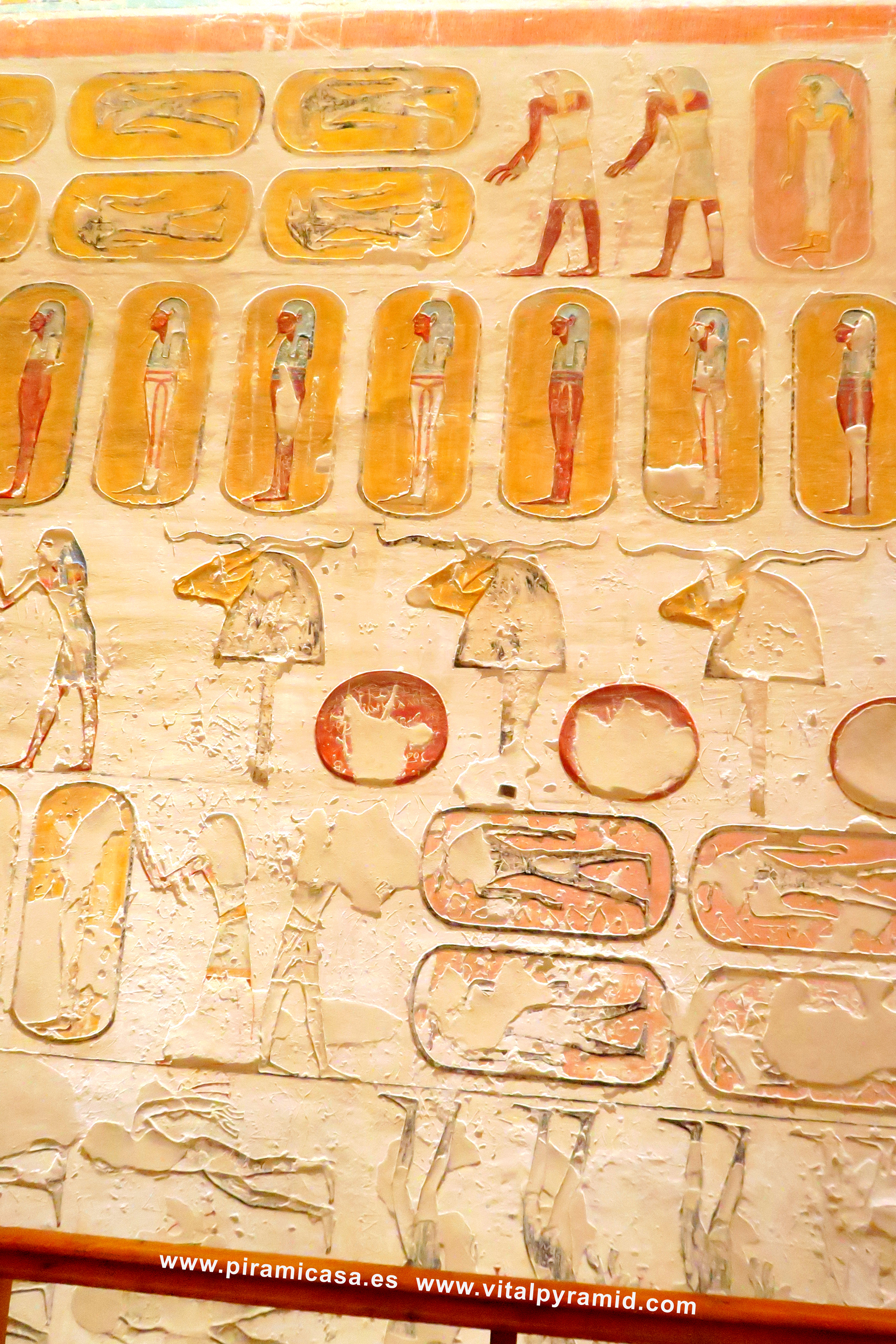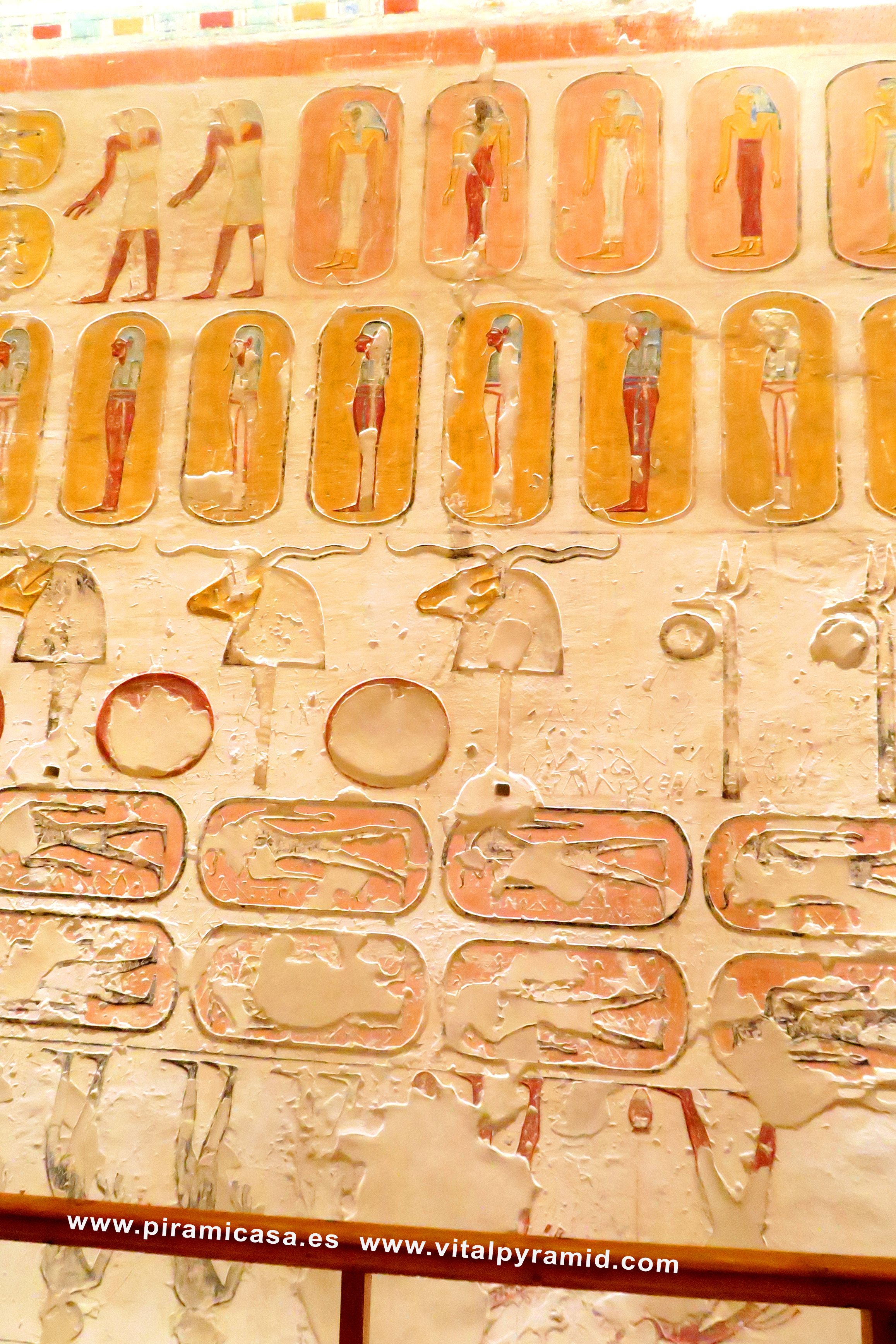 Poner los nombres de los supuestos faraones -que nunca estuvieron sepultados ahí- es casi una tontería. Les dejamos sus nombres para identificar las criptas, pero en consciencia de que ninguno de esos faraones estuvo allí, al menos no como muerto.