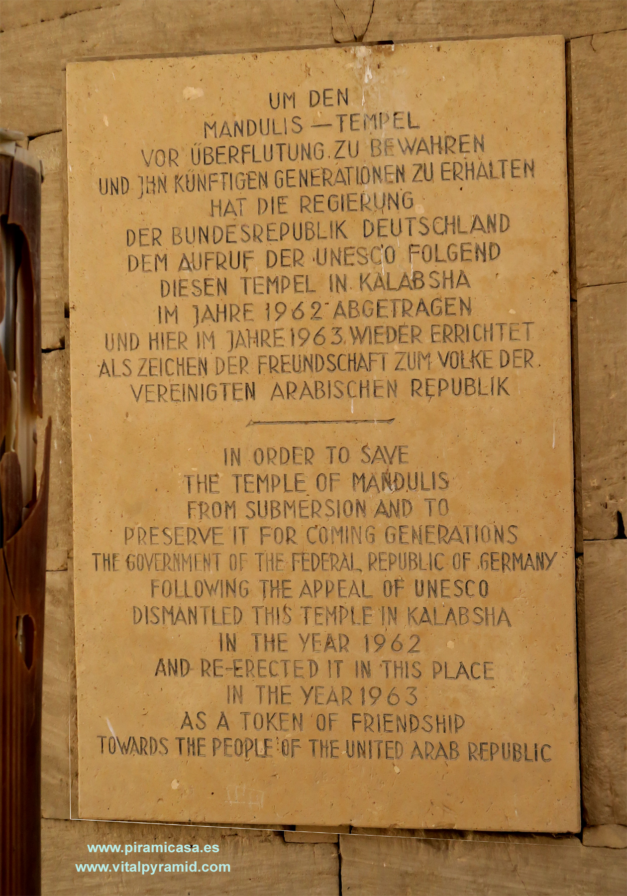 En el lago Nasser, encontramos un templo no muy grande en apariencia, que pudo ser también un recinto gigantesco en su origen. Este templo, también llamado de "Mandulis" estaba unos 57 Km más al sur y fue desmantelado en Kalabsha y reconstruido en esta isla que se llamó Nueva Kalabsha, para salvarlo de las aguas de la represa de Aswan. También colocaron allí un "kiosko" o glorieta supuestamente perteneciente a Qertassi. Otros monumentos son el Beit el-Wali y el Gerf Hussein. Pero cada cosa estaba en un sitio diferente. Por ejemplo, el Kiosko de Qertassi estaba a 30 Km de allí. En este rejunte de piezas arquitectónicas podemos encontrar cosas muy interesantes y curiosas, y la discusión histórica y la cronología puede llevarnos a tantos laberintos como el resto de Egipto. Como es lógico, los heterodoxos tenemos infinidad de preguntas sin respuesta lógica y clara, vamos al contrario de la ortodoxia, que supuestamente tiene respuesta para todo. En egiptología tenemos el problema de que no se resolverá nada hasta que se trabaje con interdisciplinaria, con criterio realmente científico. No sentimos la necesidad de dar respuesta a todo, sino de encontrar las lógicas, las verdaderas, que no surgen de sostener teorías de hace dos siglos, sino de analizar objetivamente todo lo que ha quedado.