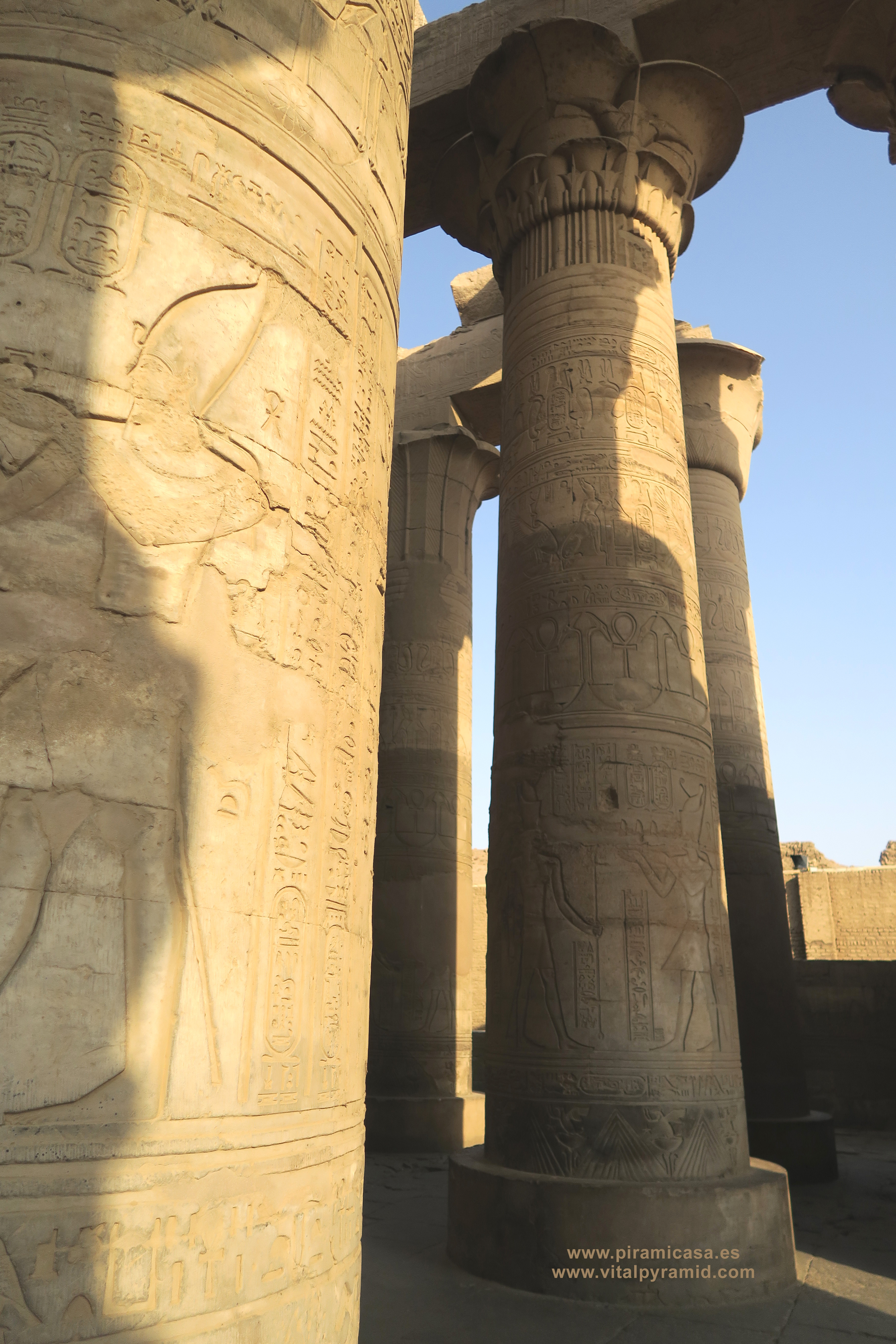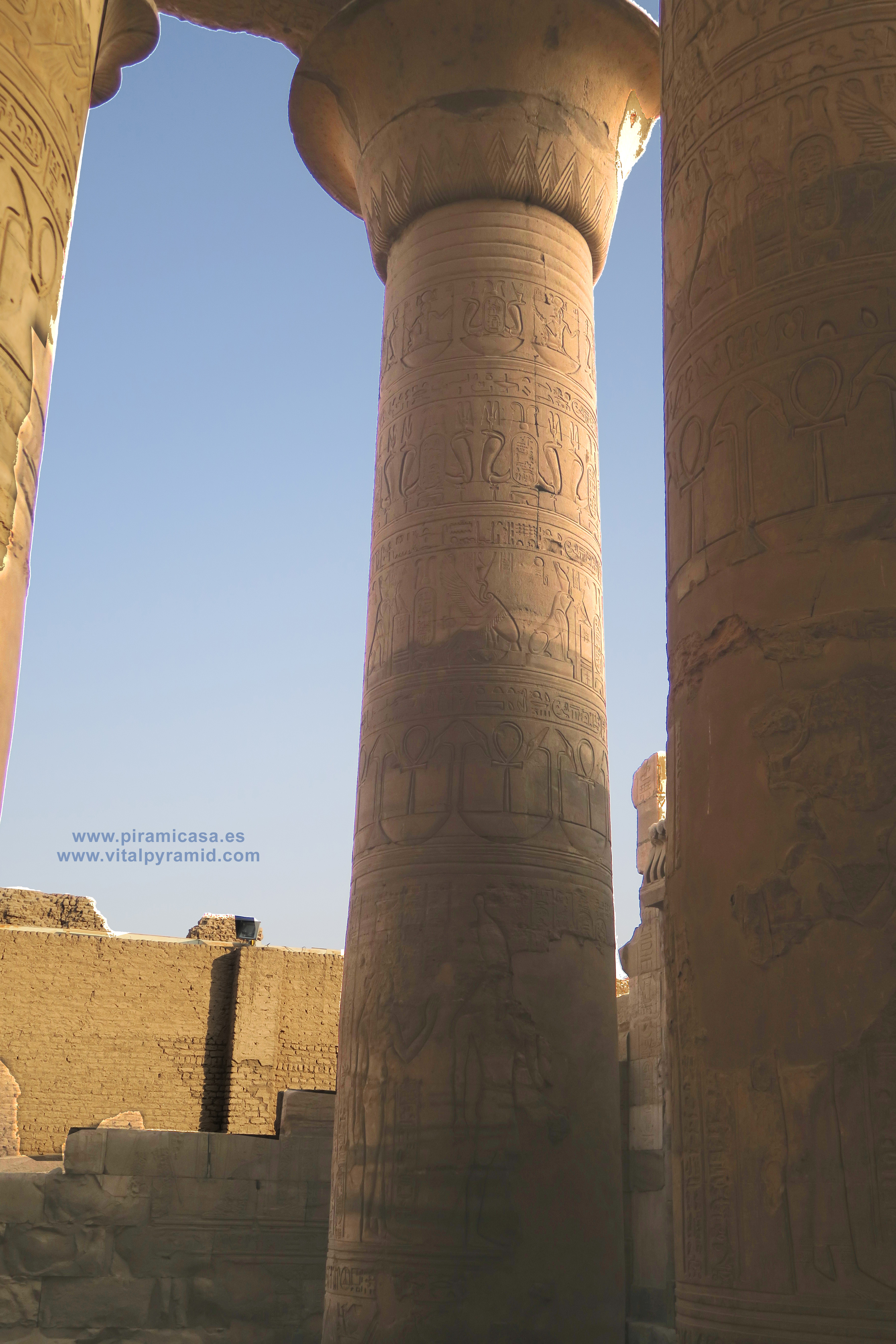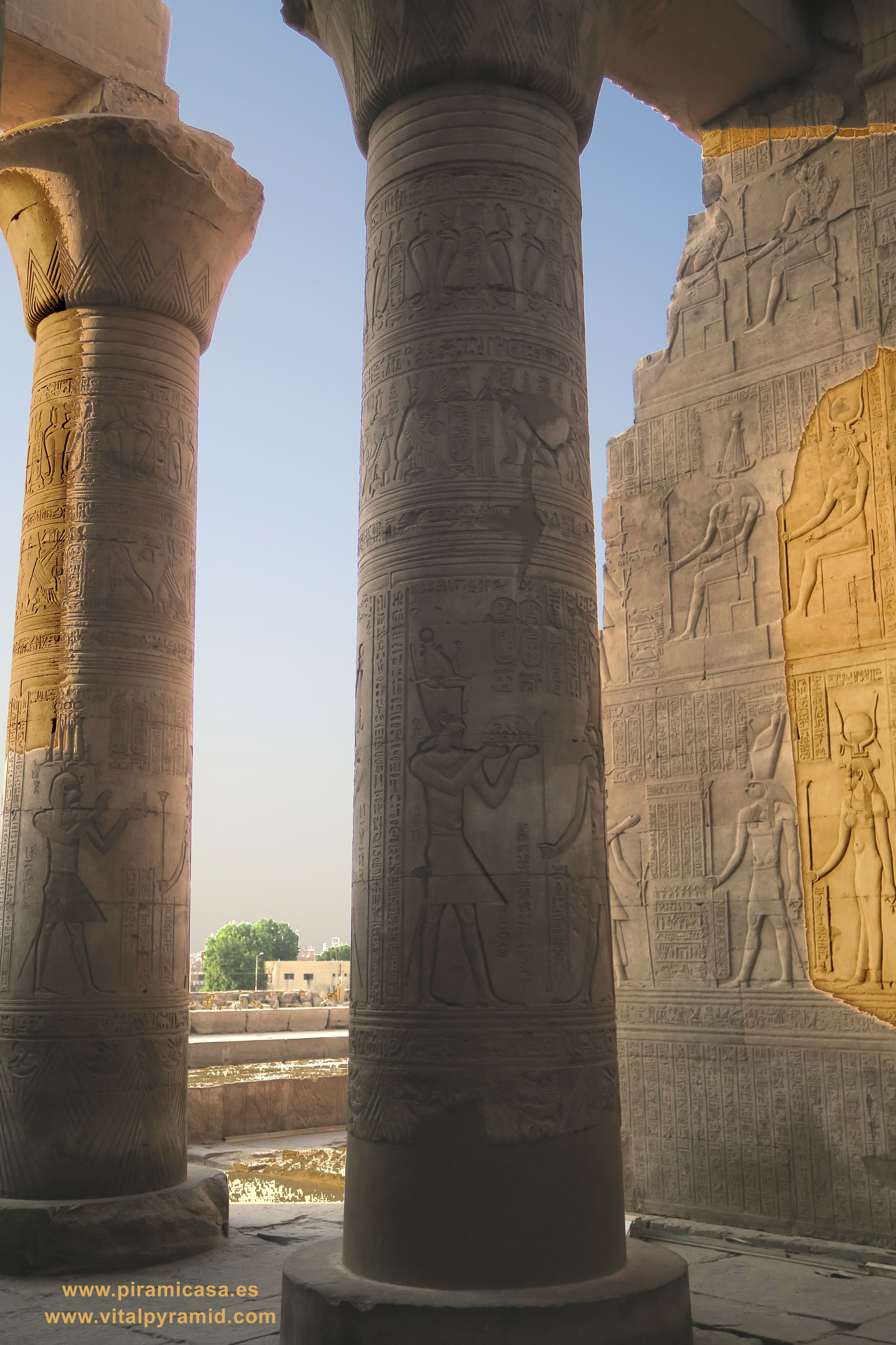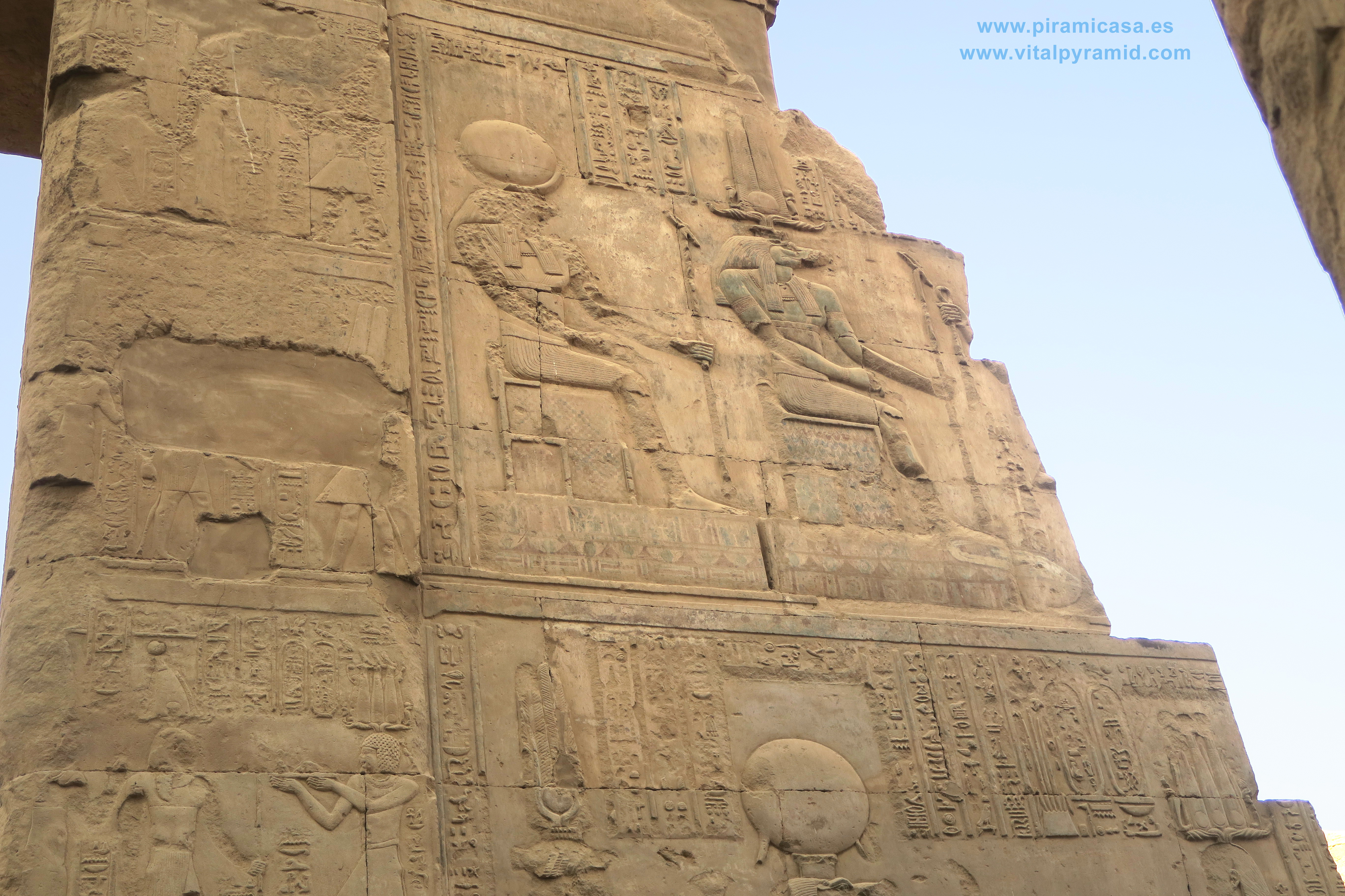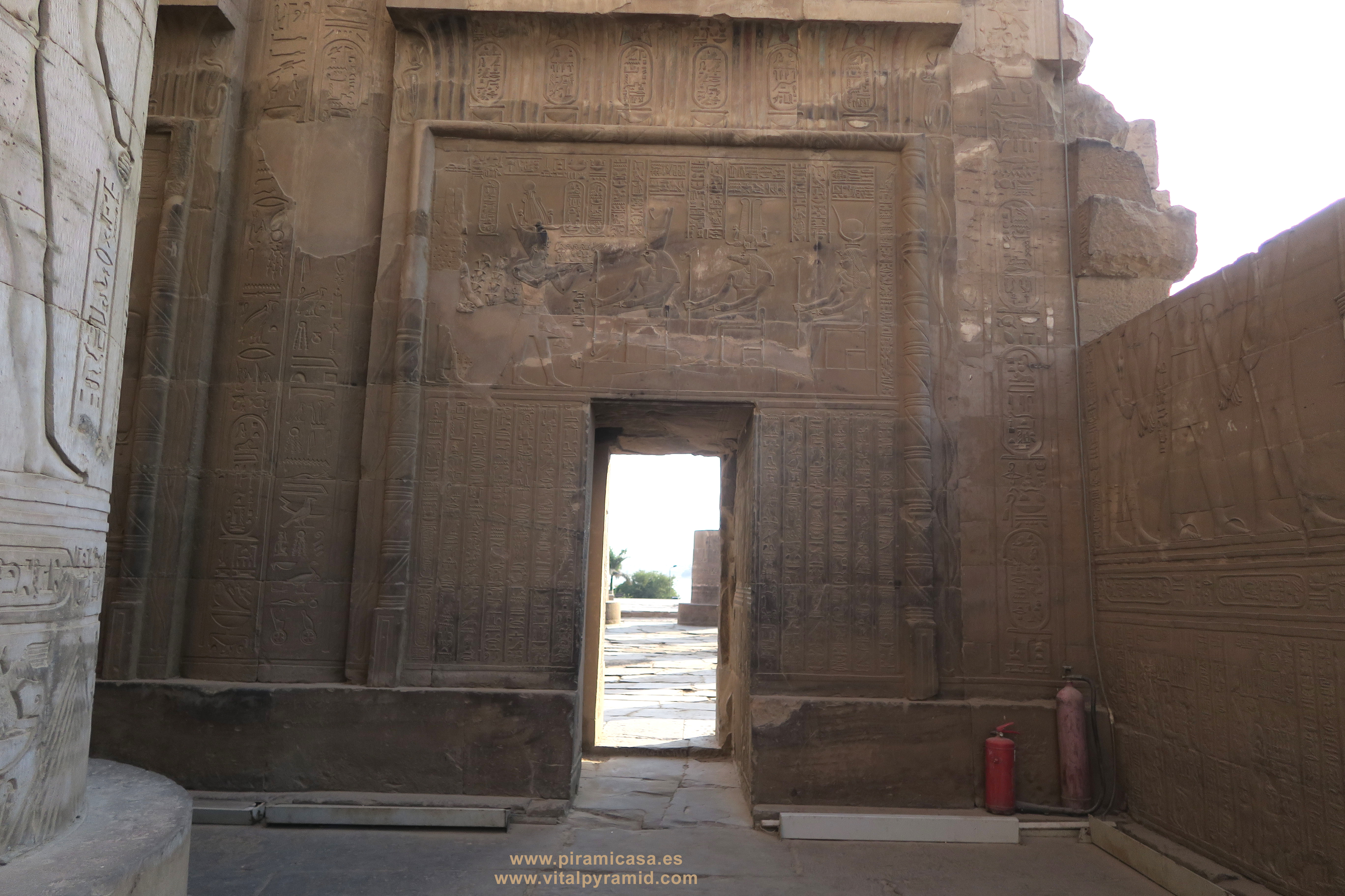 Seguimos en el Templo de Kom Ombo y en esta parte vemos abundantes escenas del proceso e iniciación del sacerdote, faraón o cualquier estudiante. Que se le represente con los símbolos de poder, sus coronas, etc., no significa que se trate de alguien en especial. Podríamos decir que es "el estudiante", "el iniciado", el que ha llegado a ser Maestro, al margen del rango que vaya a ocupar. Ha pasado por las pruebas, ha sido ungido por la enegía de Toth (el Mensajero o Didacta), por Horus (La Consciencia), por Isis (la Ciencia), por Osiris (el Conocimiento) y por Sobek (El Instinto). Sólo comprendiendo en su justo valor las idiografías de esos "dioses" caemos en la cuenta de lo importante del proceso que ha llevado todo aquel que entrata antaño a este "templo". Como quien entra a una Universidad, aunque sin duda allí recibían verdaderos conocimientos, no la sarta de bobadas que se suele enseñar hoy en nuestro sistema esclavista, que genera sólo buenos empleados, buenos capataces, buenos competidores económicos, buenos sirvientes del sistema en todos sus rangos. Allí se convertían en Seres Trascendentes...
