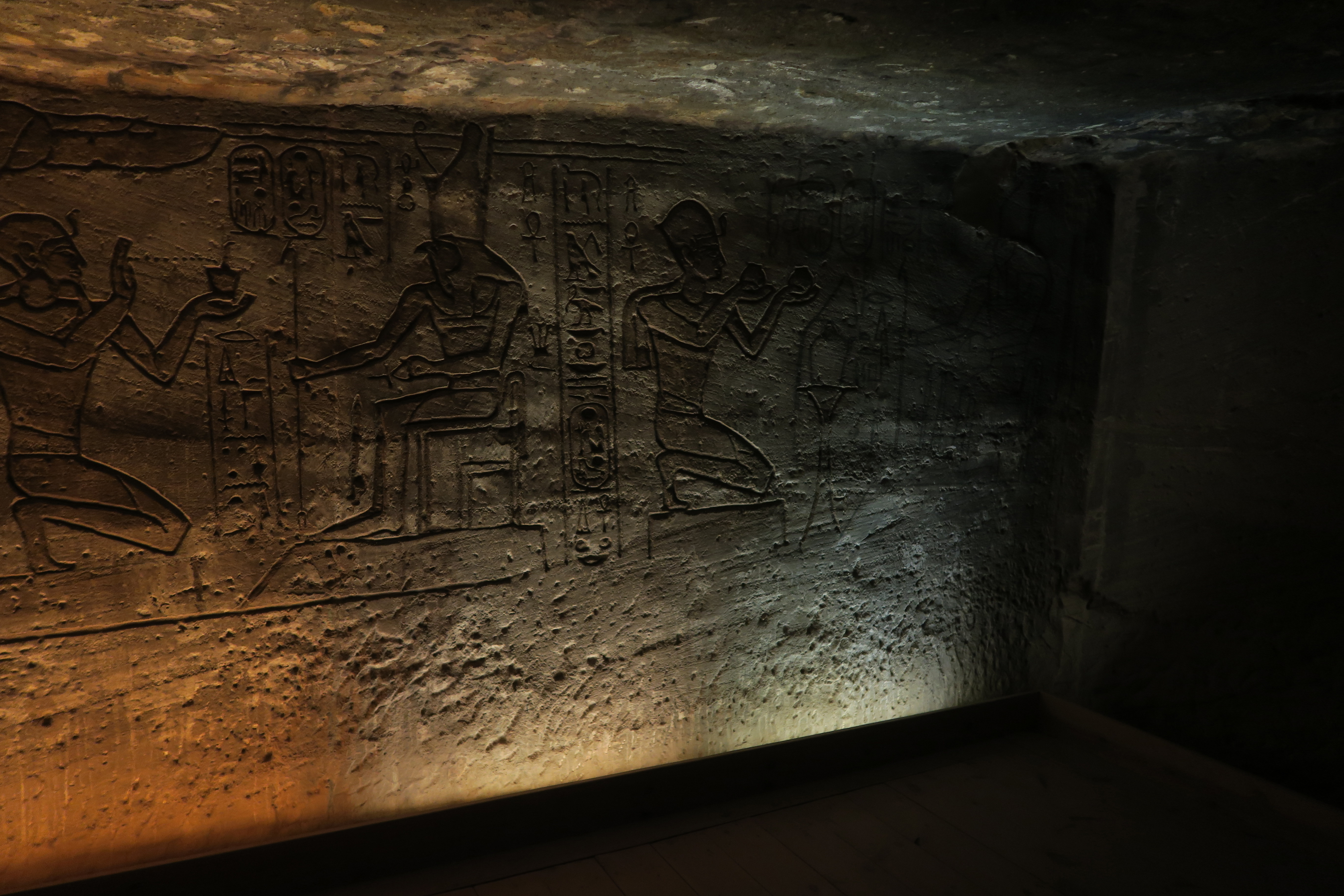 Y por fin, la luz se hizo y el Gobierno Egipcio actual, entre otras muchas excelentes obras y reformas dentro del país, ha autorizado que los turistas puedan fotografiar dentro de los Museos (no sabemos si se podrá en el nuevo Gran Museo de El Cairo, pero deseamos que sí). Ahora veamos un poco del interior de los Templos de Abu Simbel, con lo que tenemos mucho que aprender y comprender. Sobre todo para entender las dificultades que entraña hacer grabados en piedra, que no es tan fácil como los arqueólogos han supuesto hasta ahora, a fuerza de cincel y martillo.
