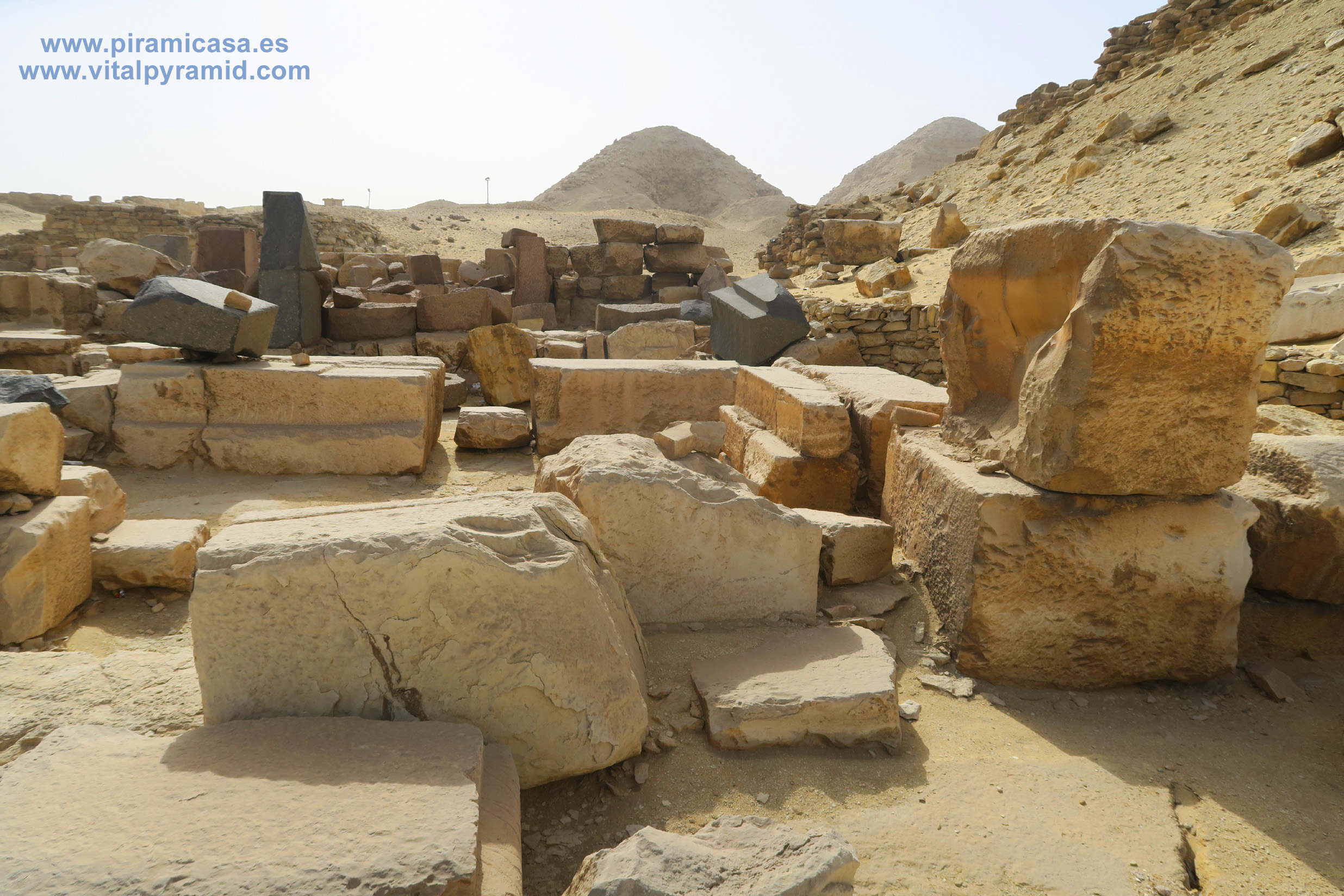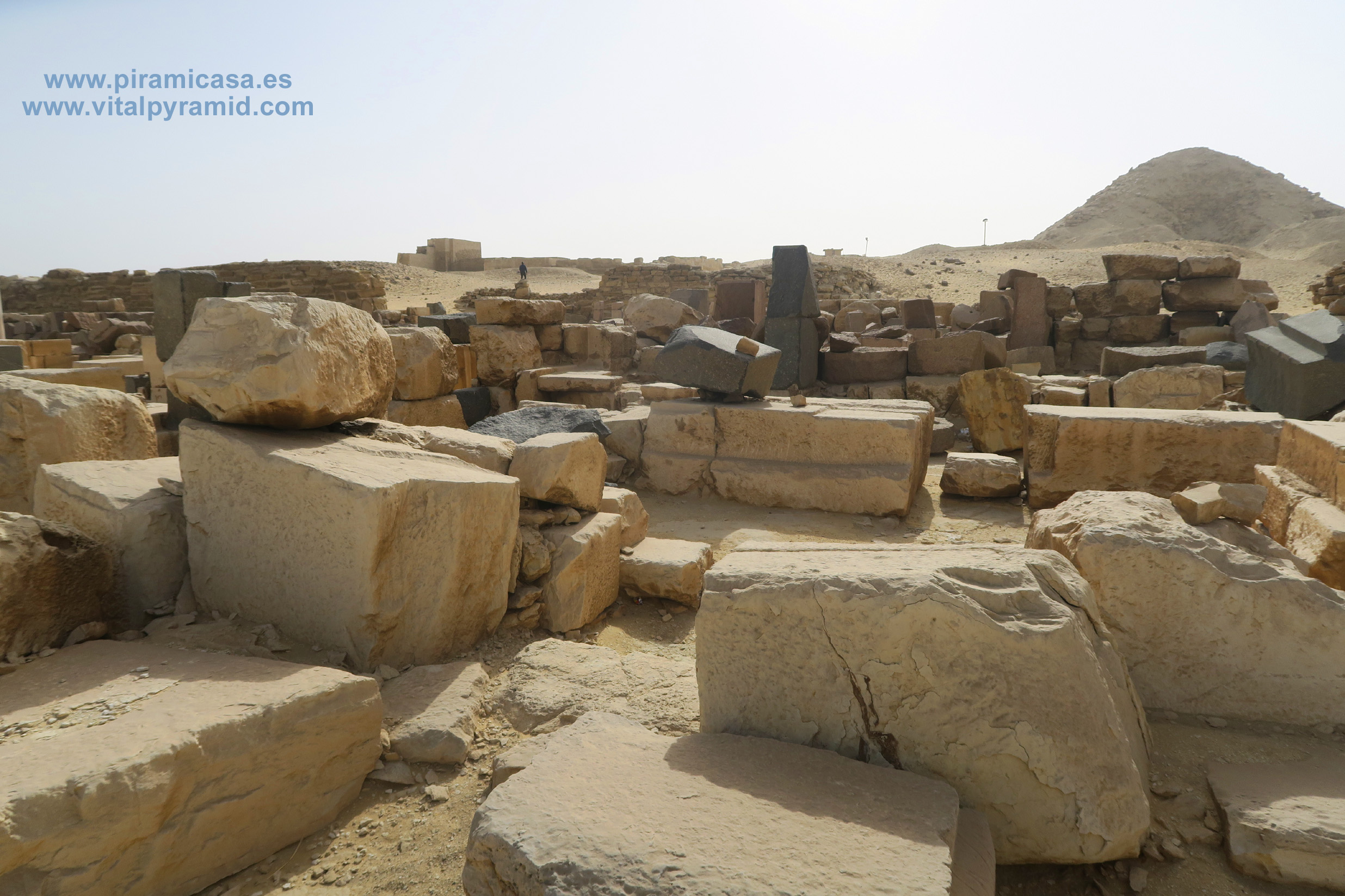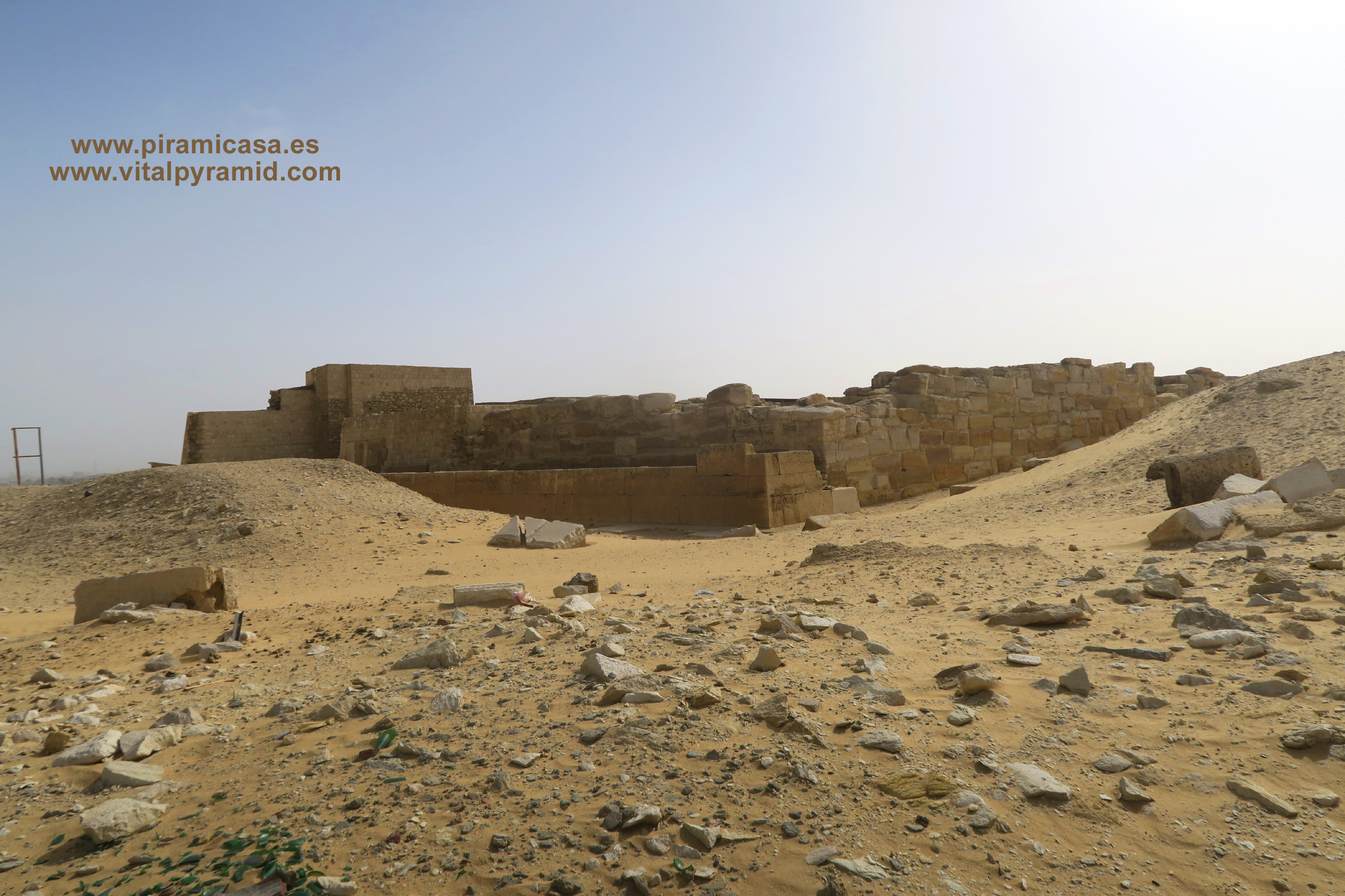 Las pirámide de Abusir son varias, pero tan derruídas que no sabemos cuántas eran. Veamos aquí algo de lo que queda. Están a unos 15 Kms en línea recta al Sur-Este de Giza. Cerca de Abusir, a unos dos mil metros, se encuentra el llamado Templo Solar de Abu Gorb, donde unas misteriosas formas pétreas parecen ser parte de una enorme maquinaria.