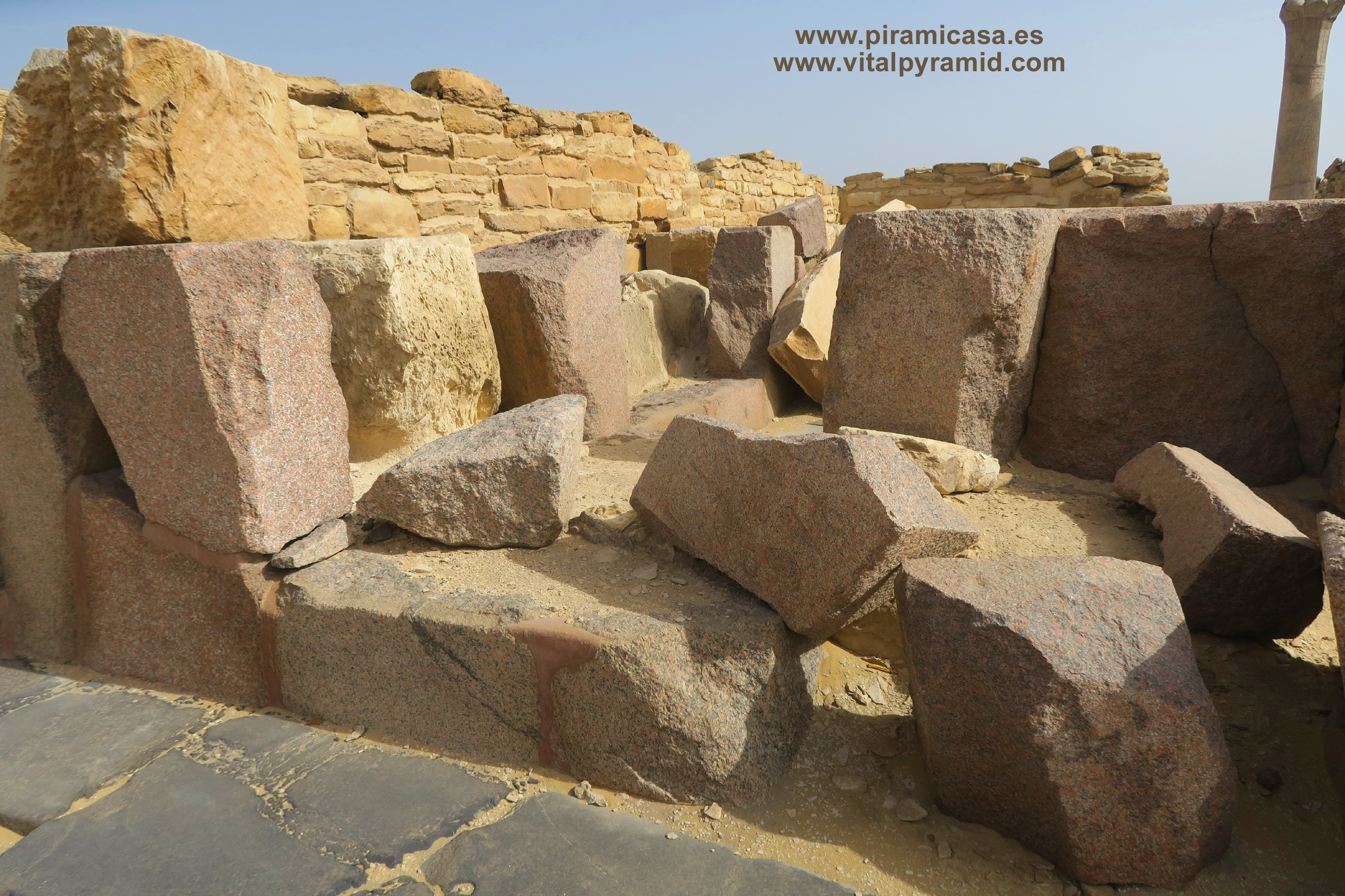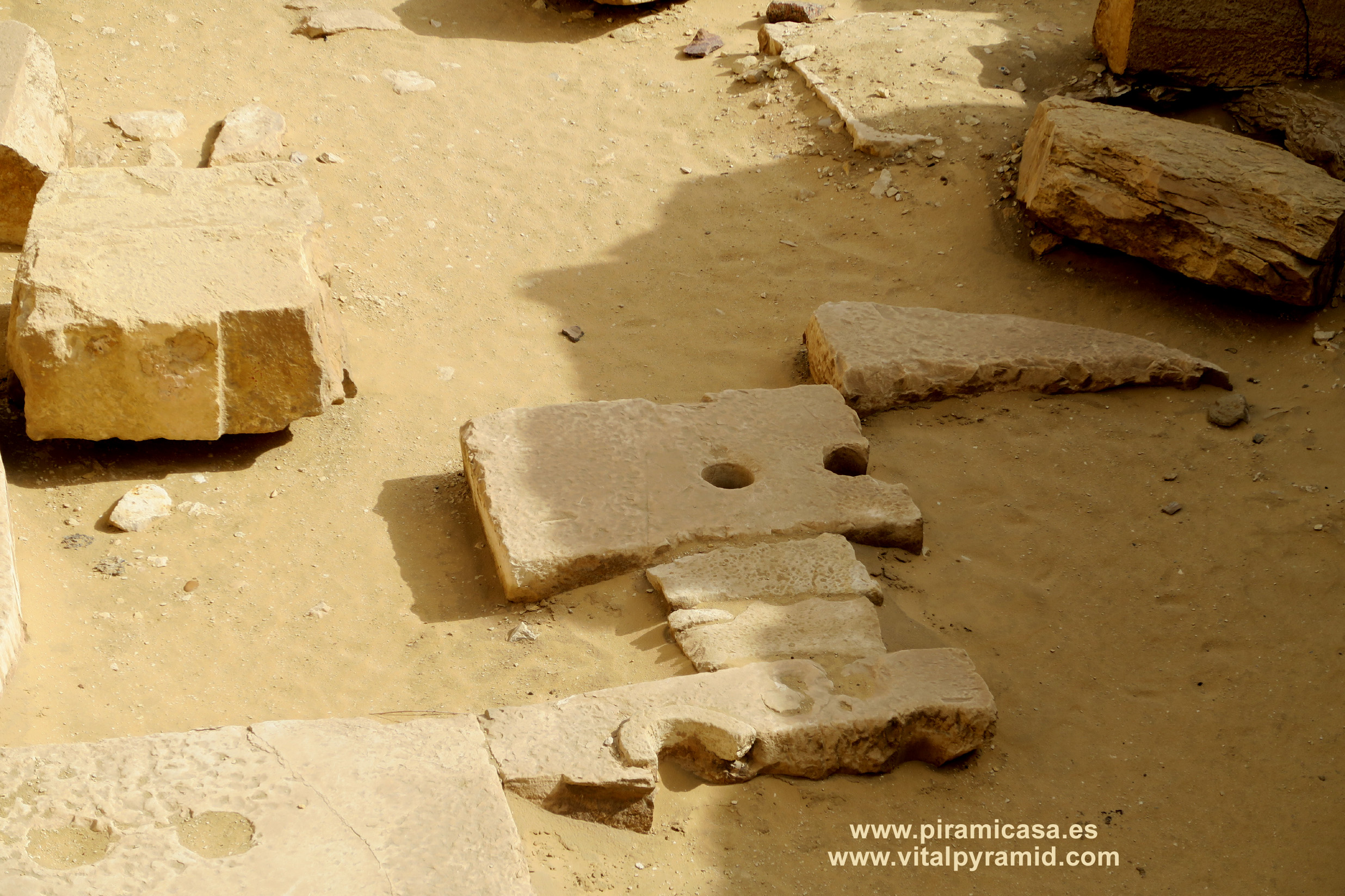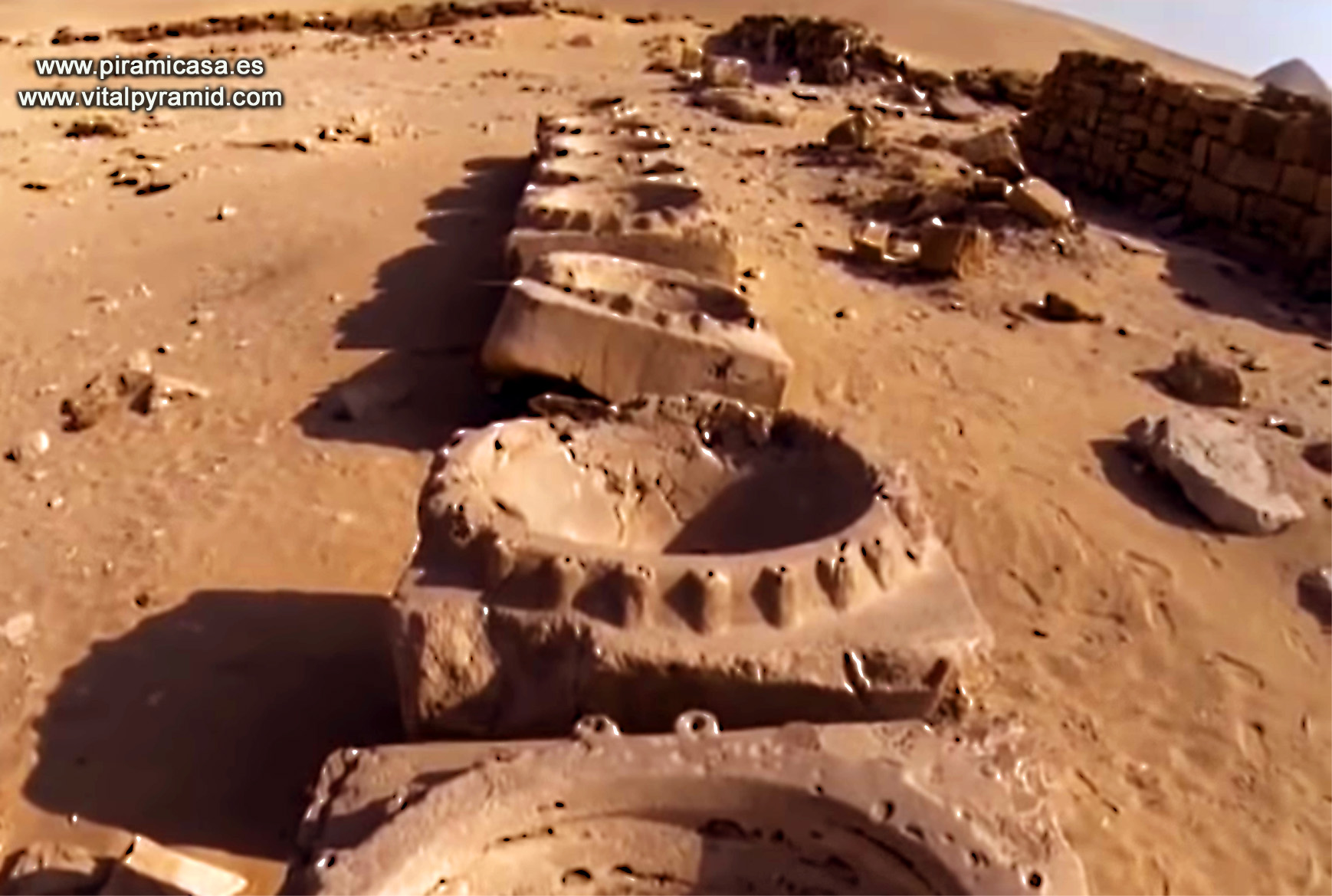 Las pirámide de Abusir son varias, pero tan derruídas que no sabemos cuántas eran. Veamos aquí algo de lo que queda. Están a unos 15 Kms en línea recta al Sur-Este de Giza. Cerca de Abusir, a unos dos mil metros, se encuentra el llamado Templo Solar de Abu Gorb, donde unas misteriosas formas pétreas parecen ser parte de una enorme maquinaria.