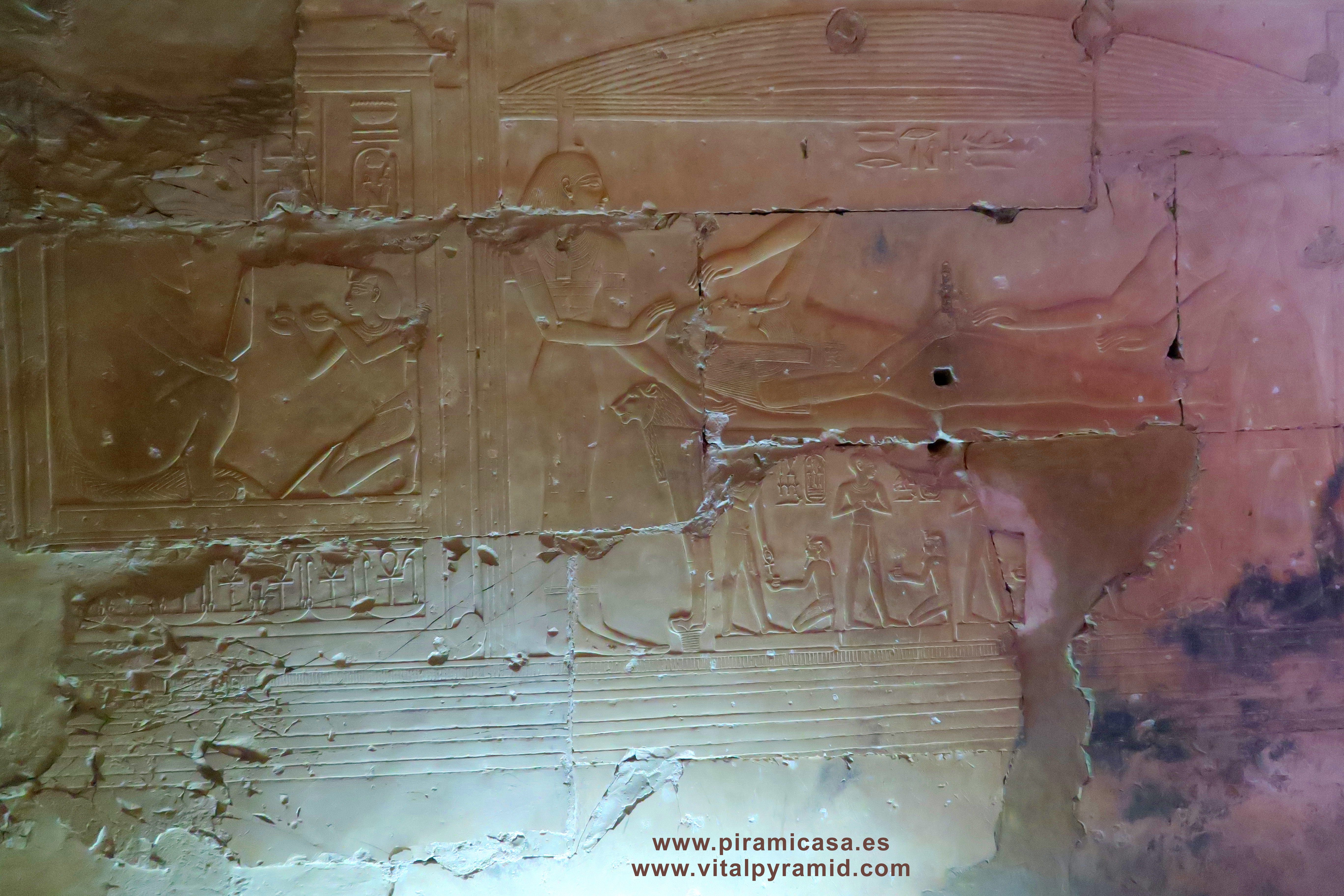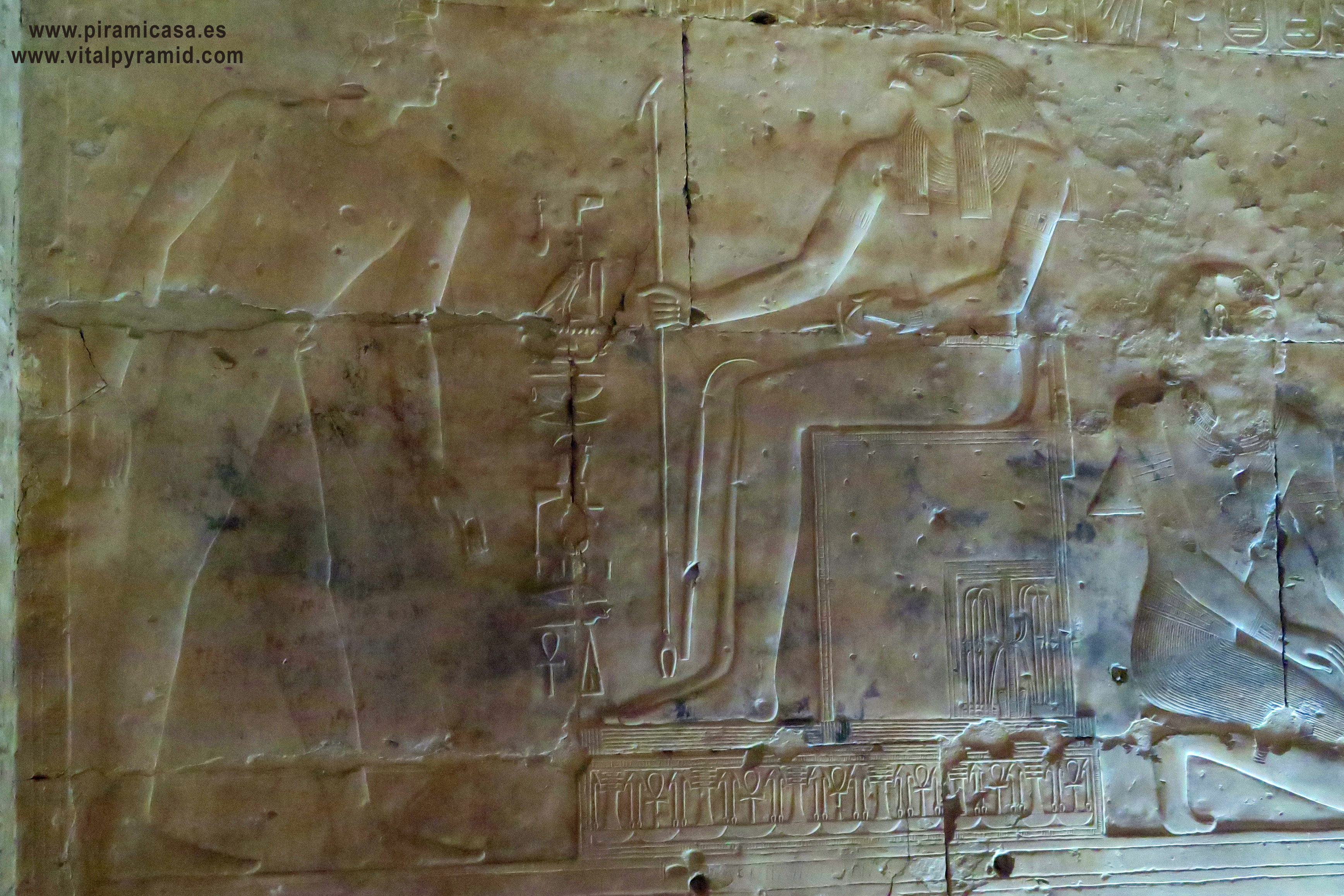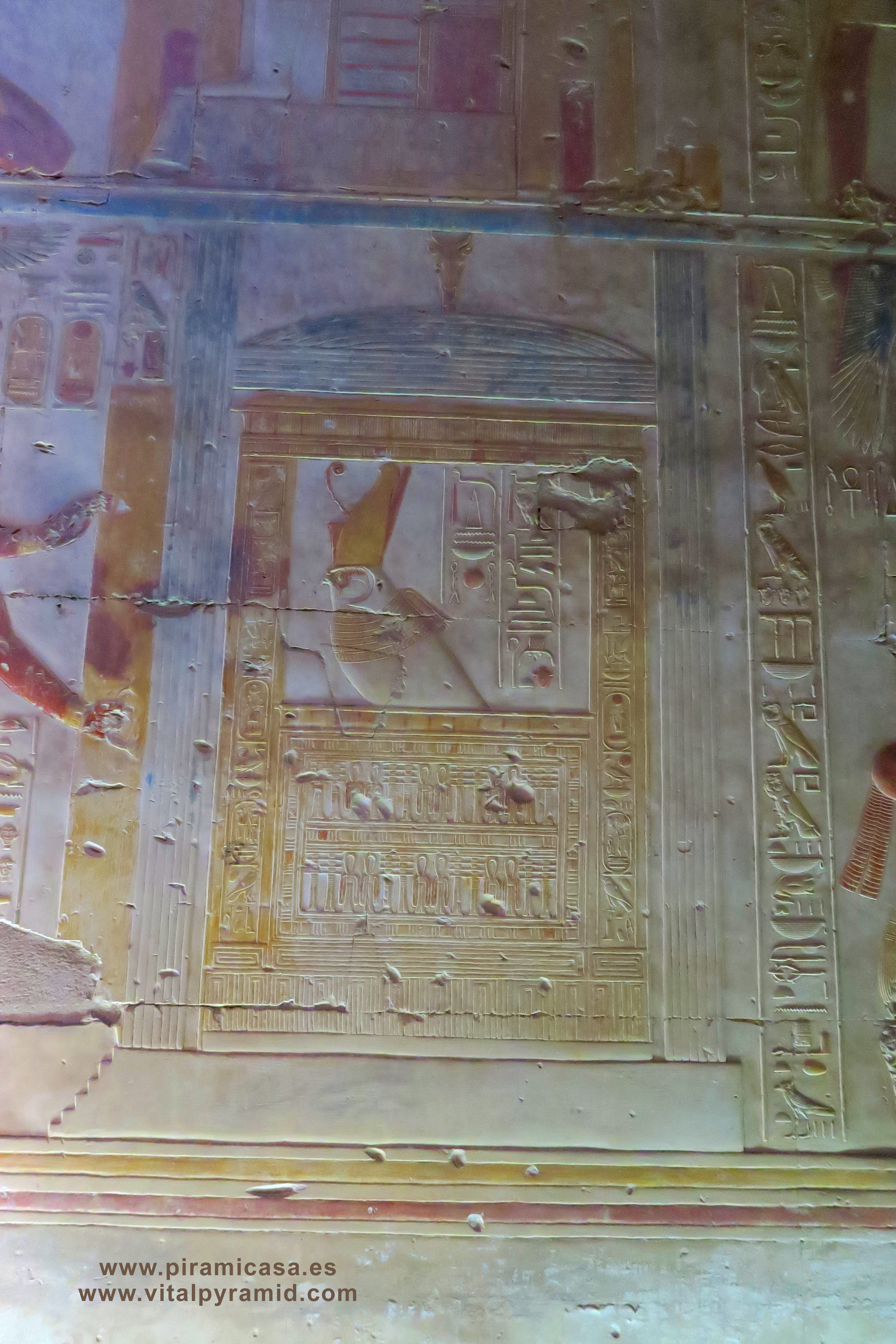Sobre esta especie de "Capilla de Horus", una jirafa, pero la capilla en sí nos muestra características que sólo resultan comprensible en la era de las computadoras. Horus representa la Consciencia, de modo que se trata de algo "que habla", o mediante lo cual se habla con alguien. |
