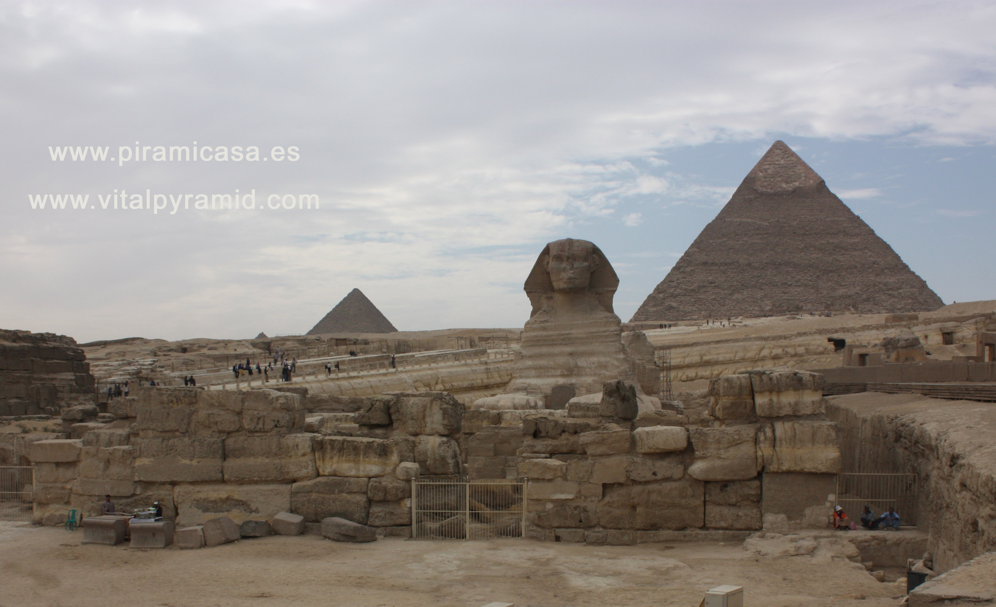 Las tres pirámides, atribuida a los faraones Keops (Jufu), Kefrén (Jafra) y Micerinos (Menkaura), quienes deducimos que no tuvieron nada que ver, si es que existieron con esos nombres, son estructuras realizadas hace trescientos mil años en piedra caliza dura, pero también hay muchos bloques de granito rojo y gris, que componían entre el cinco y el quince por ciento de estas pirámides. Las canteras más cercanas son las de Aswán y eso queda a unos mil Kilómetros por línea de agua, a unos 890 Km en línea recta.