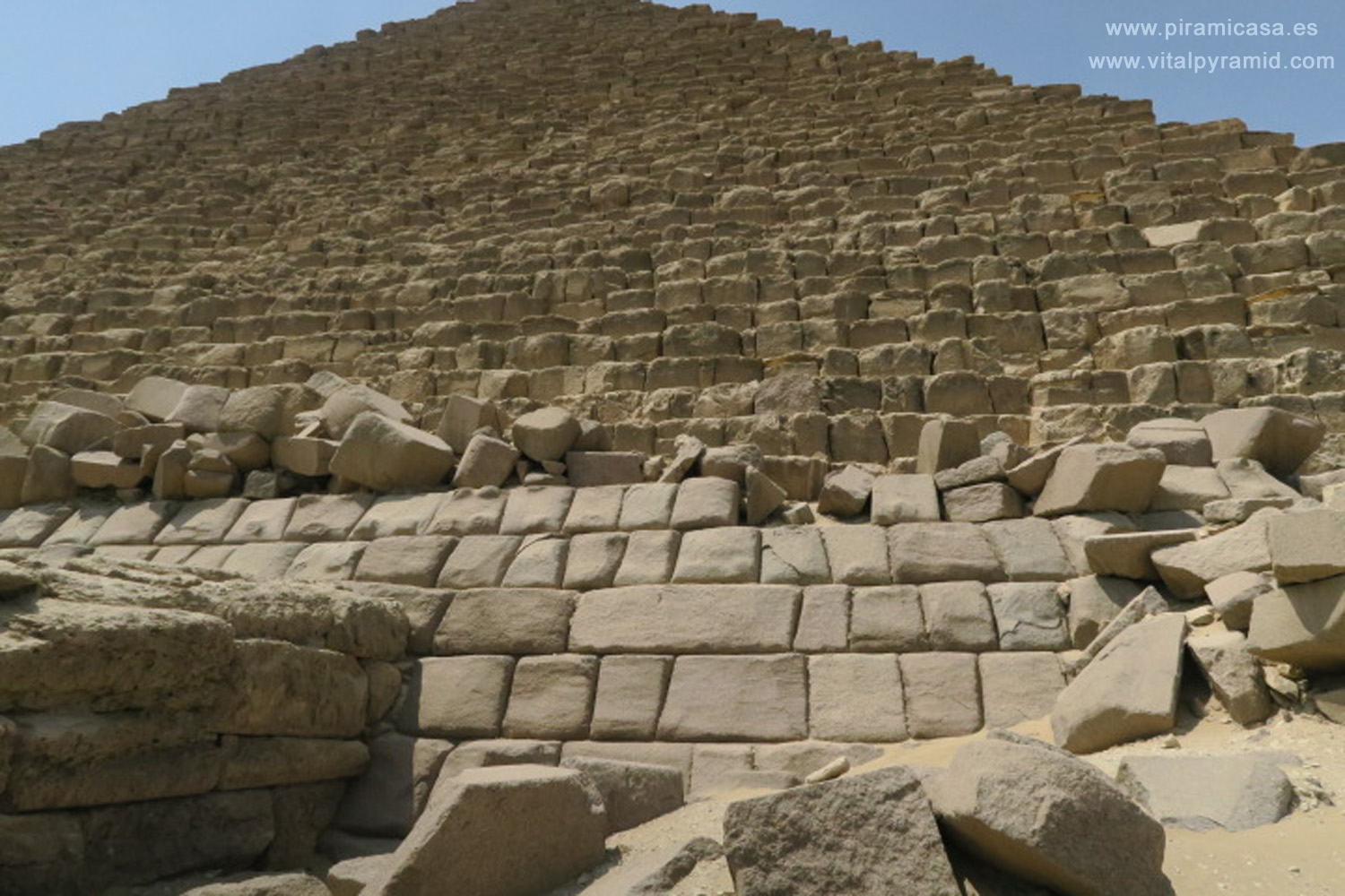 Si bien en Guize tenemos pocas fotos expuestas, en realidad son algunos miles, pero no hay como en otros sitios, una profusión de jeroglíficos tan grande. Sin embargo esta meseta presenta no sólo la pirámide más perfecta que se haya construido jamás (al menos de las que conocemos) sino que si la Gran Pirámide tiene 230 metros de lado, la siguiente, adjudicada a Kefrén (Jafra) sólo tiene 15 metros menos de base, y la relación de obra aún para las más pequeñas, las supuestamente "de las Reinas", es un trabajo enorme. Veamos algunos datos útiles: