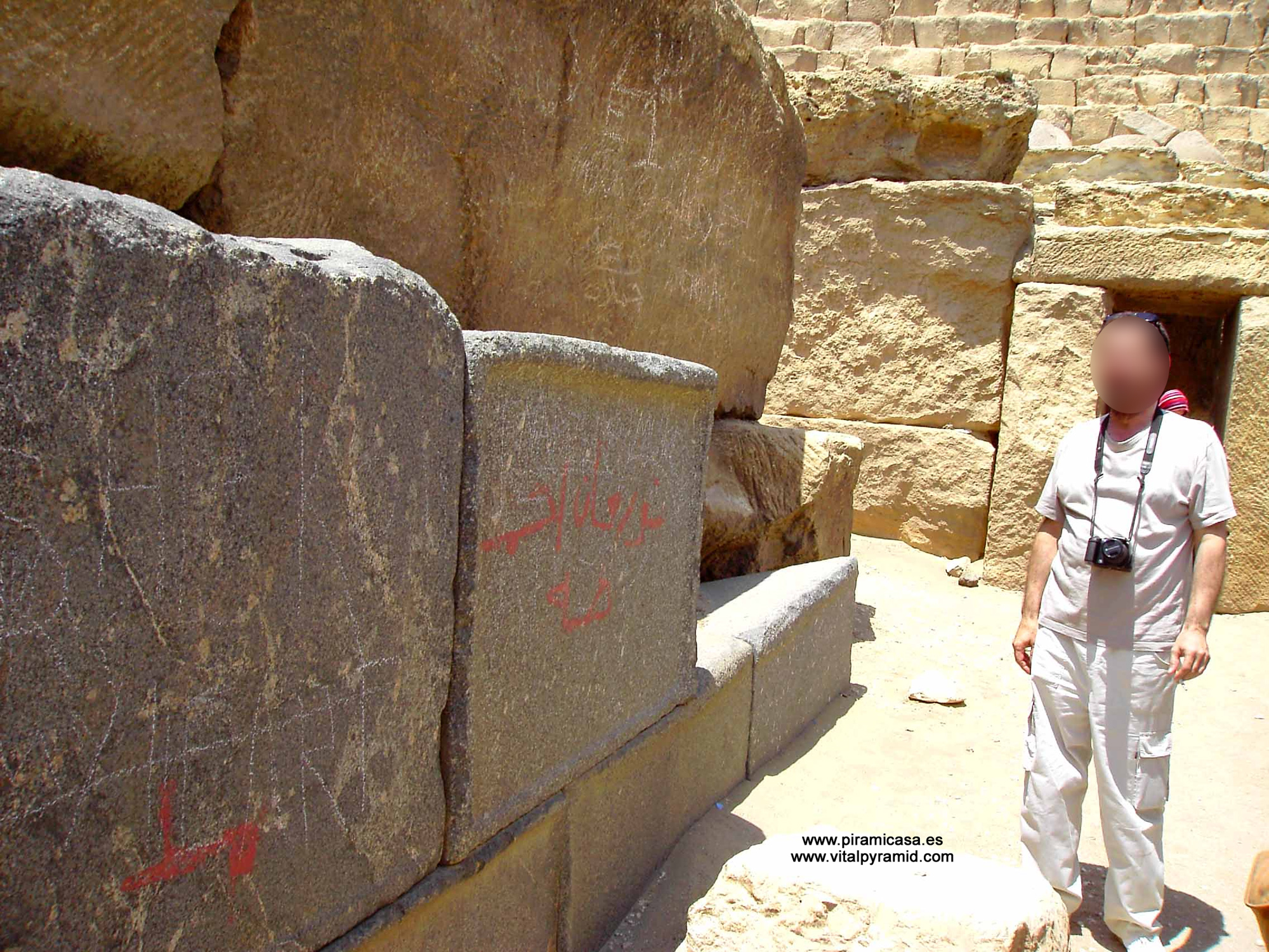 Como decía, la siguiente no es mucho más pequeña. Si bien mucho menos estudiada, guarda extraordinarios secretos que vamos desvelando a medida que podemos investigar, lentamente debido a las grandes restricciones que hay para hacer arqueología, aunque más no sea con una cinta métrica y algún distanciómetro láser. Veamos las medidas de la pirámide de Kefrén: