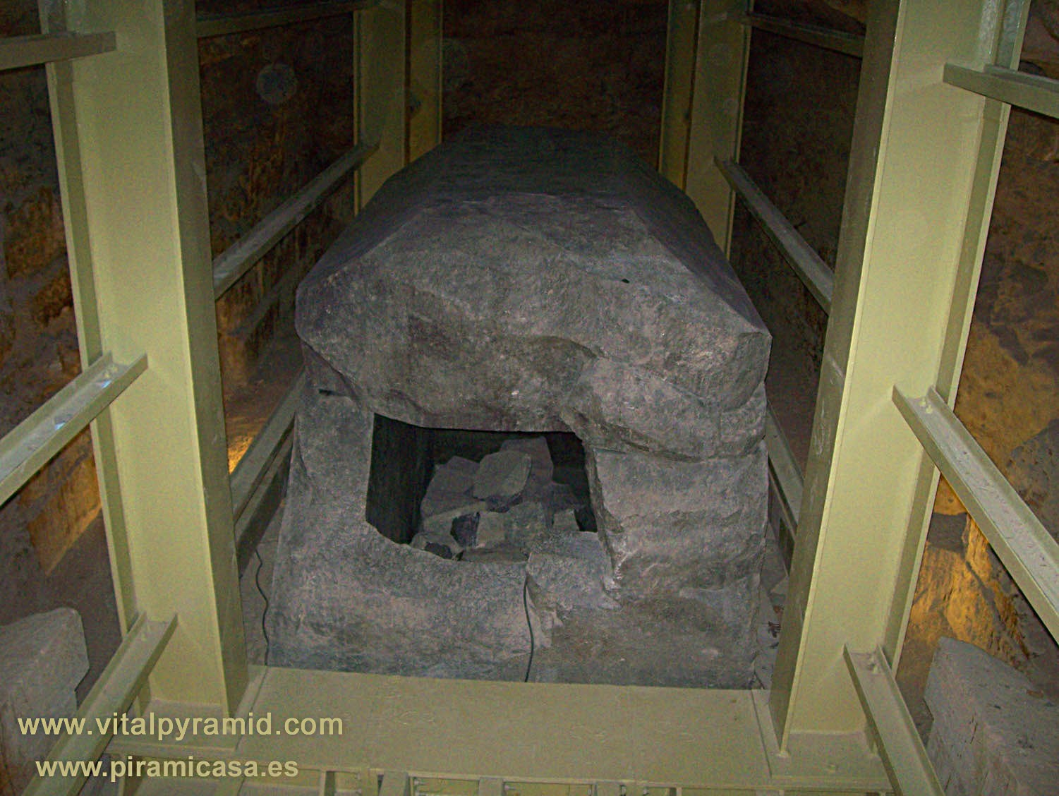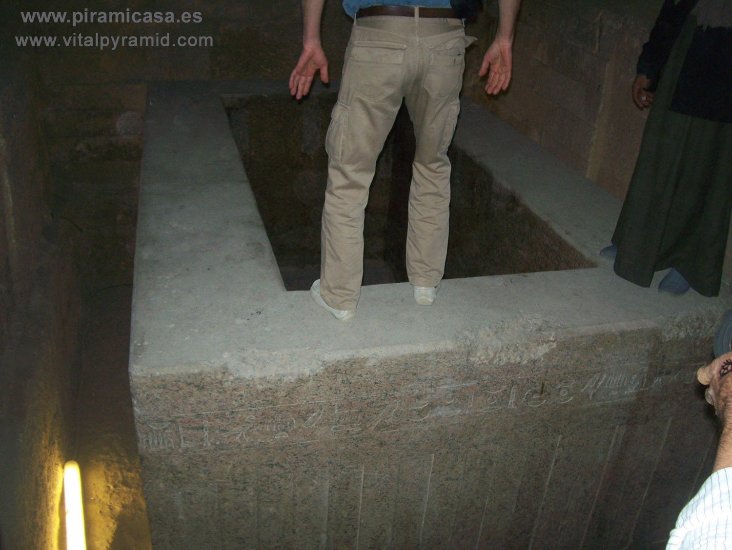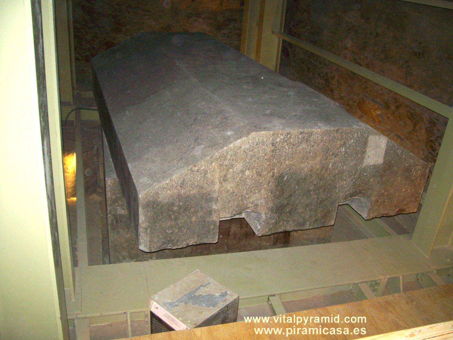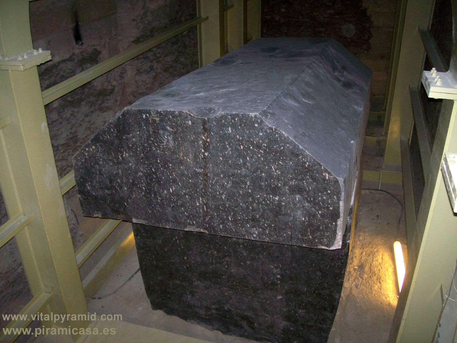 Téngase en cuenta que estas 24 moles de granito proceden de cien kilómetros algunas (cuarcita de Giza) y otros tienen su cantera de granito más cerca a casi 900 Kms, en Aswan. Estos tanques, que no fueron nunca sarcófagos, que estaban cerrados al vacío sin que hubiera una válvula de extracción de aire, alguna vez contuvo algo ( o a alguien/es) que desapareció (o desaparecieron) de allí sin dejar rastro alguno y se llevaron hasta el aire. En el Libro Faraón explico bajo Conocimiento Hermético todo esto, pero no cuadra en la corta mentalidad de las ciencias oficiales, excepto para los físicos cuánticos, algunos de los cuales han apuntado la teoría de la teletransportación. No descarto yo esa teoría, que sería bastante lógica, pero hay otra más lógica aún y que ha tenido sus antecedentes reales en la "autocombustión", de la que la Scotland Yard lleva unos dos mil casos estudiados en todo el mundo. Se trataría de procesos ascensionales, algo en lo que no me puedo extender en estas páginas.