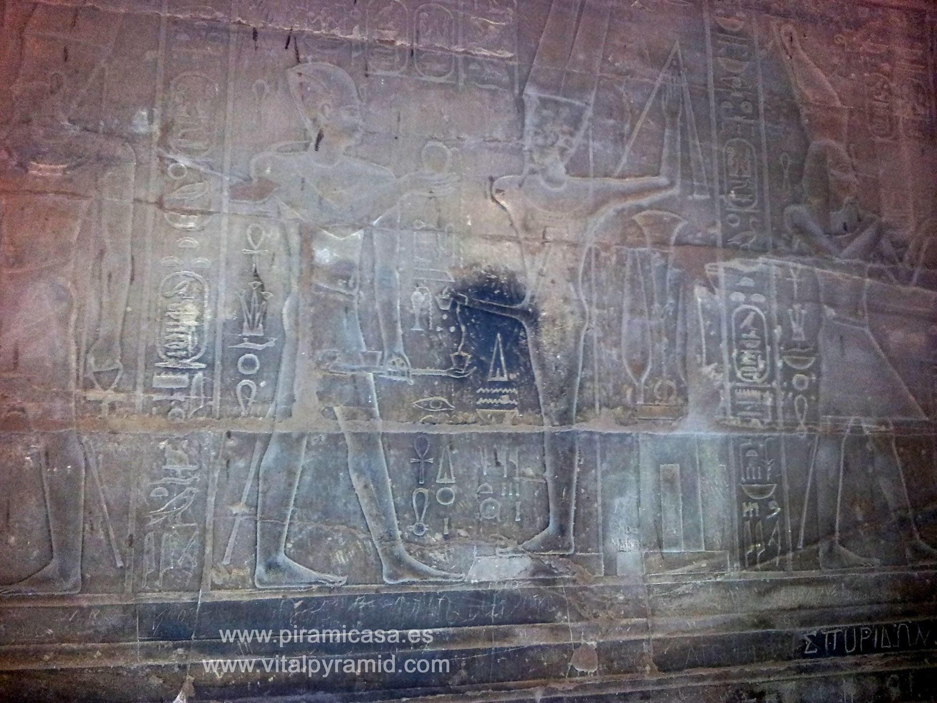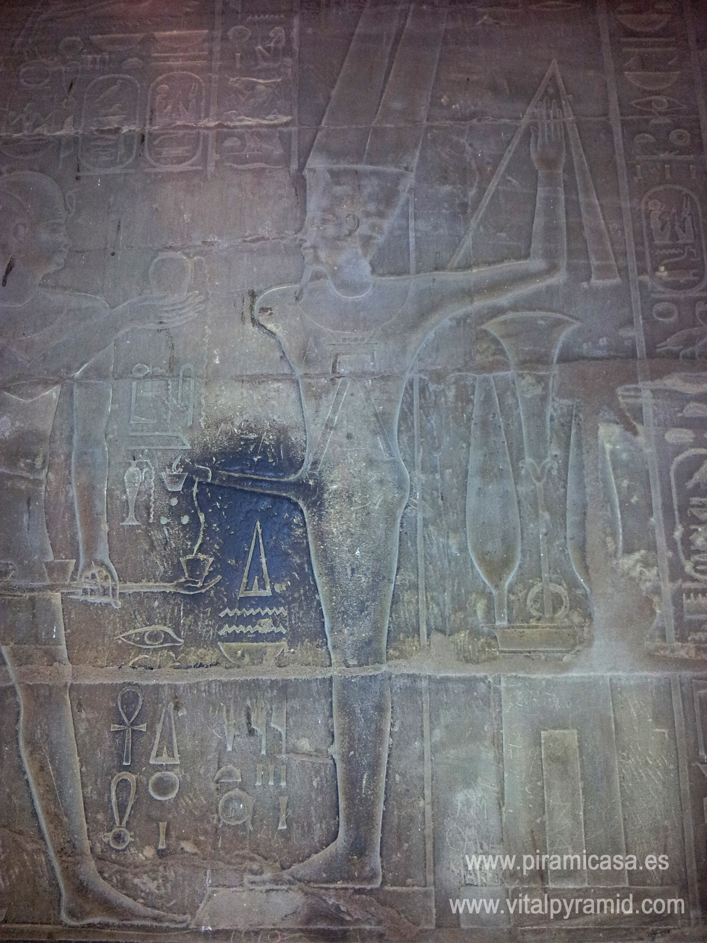 Entre las muchas maravillas que contiene este bello Templo de Luxor, está la imagen de un espermatozoide, junto al falo del "dios Min", al que se le atribuyen leyendas de fertilidad, como que era un hombre que perdió una pierda, quedando luego "al cuidado de las mujeres del pueblo" y dejando a todas ellas embarazadas. Los otros varones, en vez de enojarse, le tomaron por un dios. Lo normal sería que le hubiesen cortado las otras dos piernas. Lo cierto es que tras muchas discusiones, dejamos a los que insisten en que es un cántaro echando agua porque la idea no se sostiene, como no se sostiene un cántaro agarrando el chorro de agua... ni se vuelca el agua hacia atrás, como en la imagen tercera de la columna de la derecha.