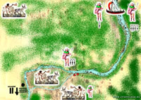 Mientras casi la mitad de las fuerzas se enfrentaban contra una numerosa tropa enemiga al Sureste, Isman encontró un camino fácil de transitar durante dos días de marcha y se reunió con Gibured en el punto marcado, donde permanecieron en descanso relativo un día completo para recuperar fuerzas, mientras los Invisibles hacían como siempre, el magnífico trabajo de inspeccionar muy de cerca el cuartel del enemigo. Sólo les separaba medio día de marcha por tierra o un día de navegación por el río. Los exploradores encontraron el camino que unía el frente que se hallaba en batalla con el puerto, por lo que se dispuso una dispersión de tropas, a fin de asegurarse que no pudieran comunicar los combatidos y los del campamento.