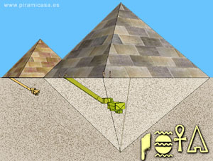 -Estamos bajando a unos veinte codos de profundidad, si el diseño es como aquellas -decía el Faraón más tarde mientras descendían por la estrecha rampa en una de las pirámides menores.